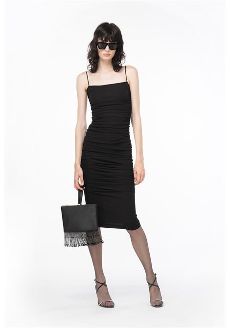 Abito a maniche lunghe verde acqua con dettaglio plissettato