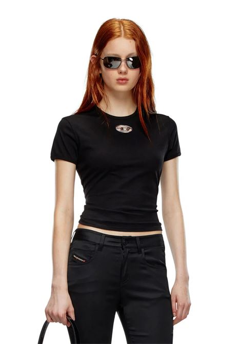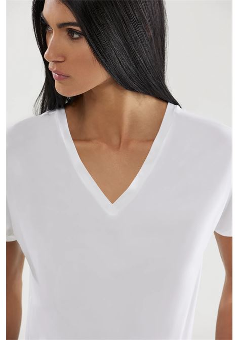 T-shirt Donna in Cotone Rame con Collo Ricamato Grifoni