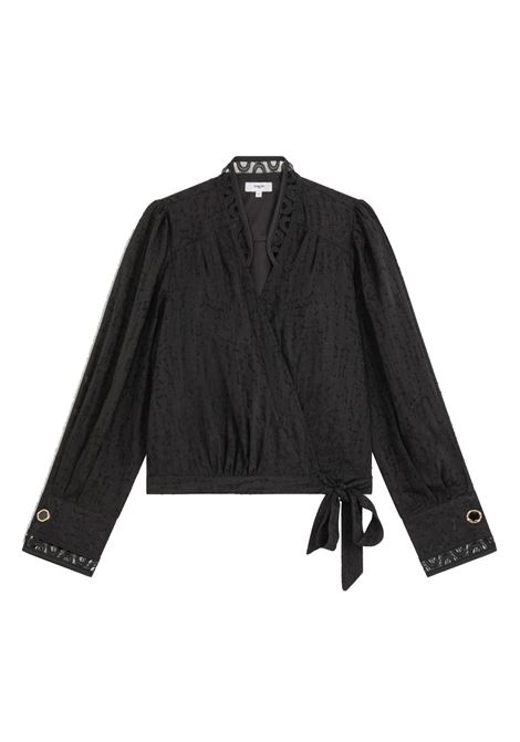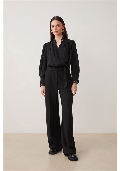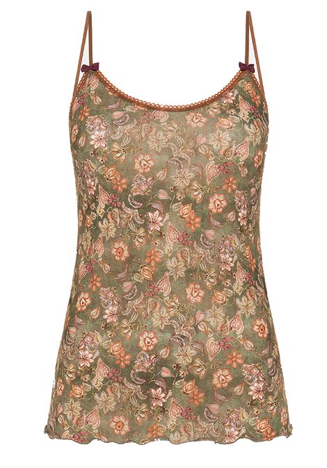 Top beige con fantasia etnica e applicazioni gioiello Nekane