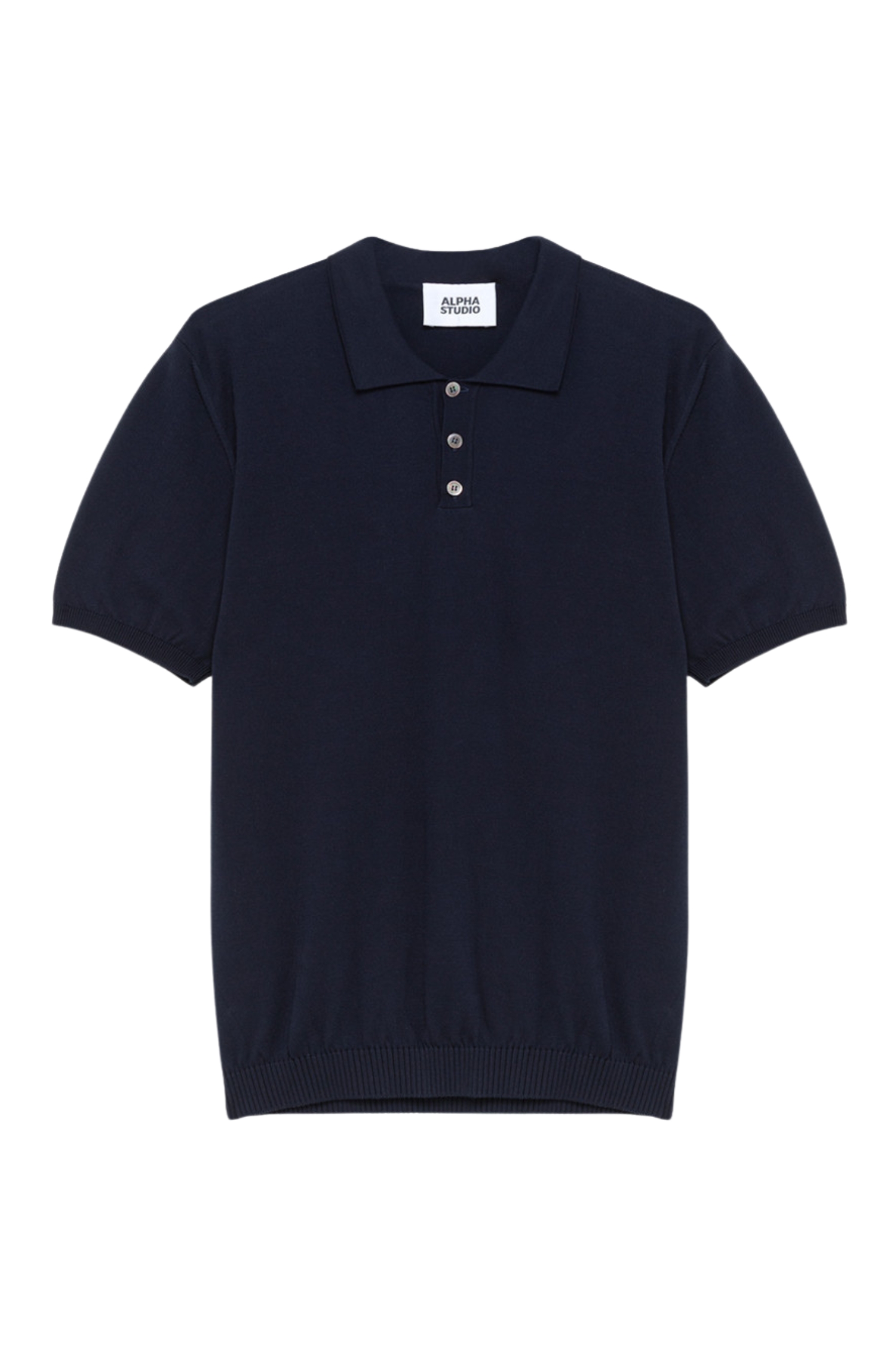 Alpha Studio blue cotton crepe polo with three-button placket