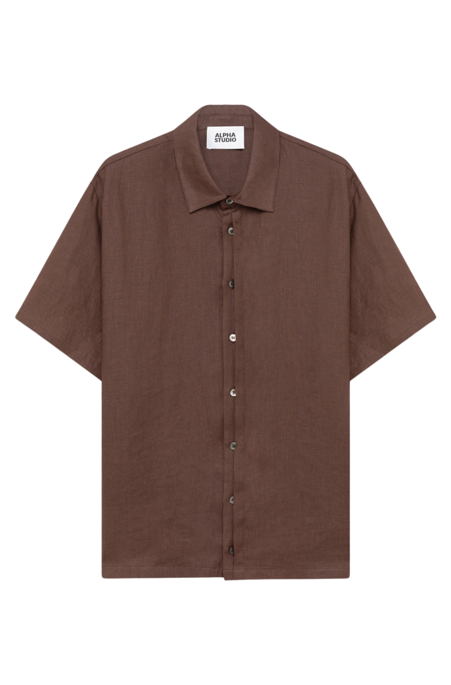 Alpha Studio chocolate linen short sleeve shirt