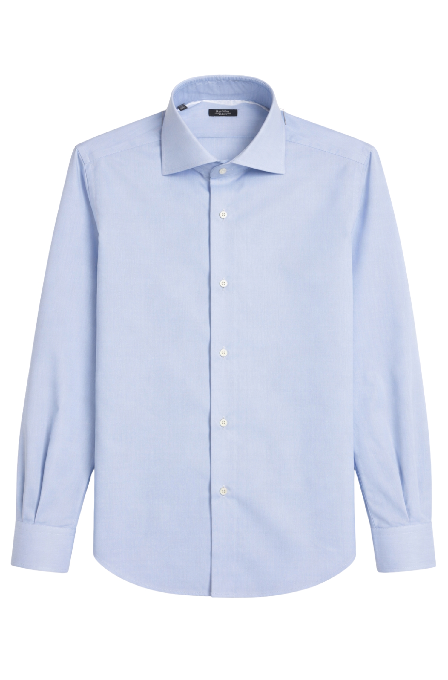 This Barba Napoli shirt features a solid light blue tone with a slightly textured surface that adds subtle visual depth. The classic construction is defined by a structured wide collar that enhances the overall silhouette.