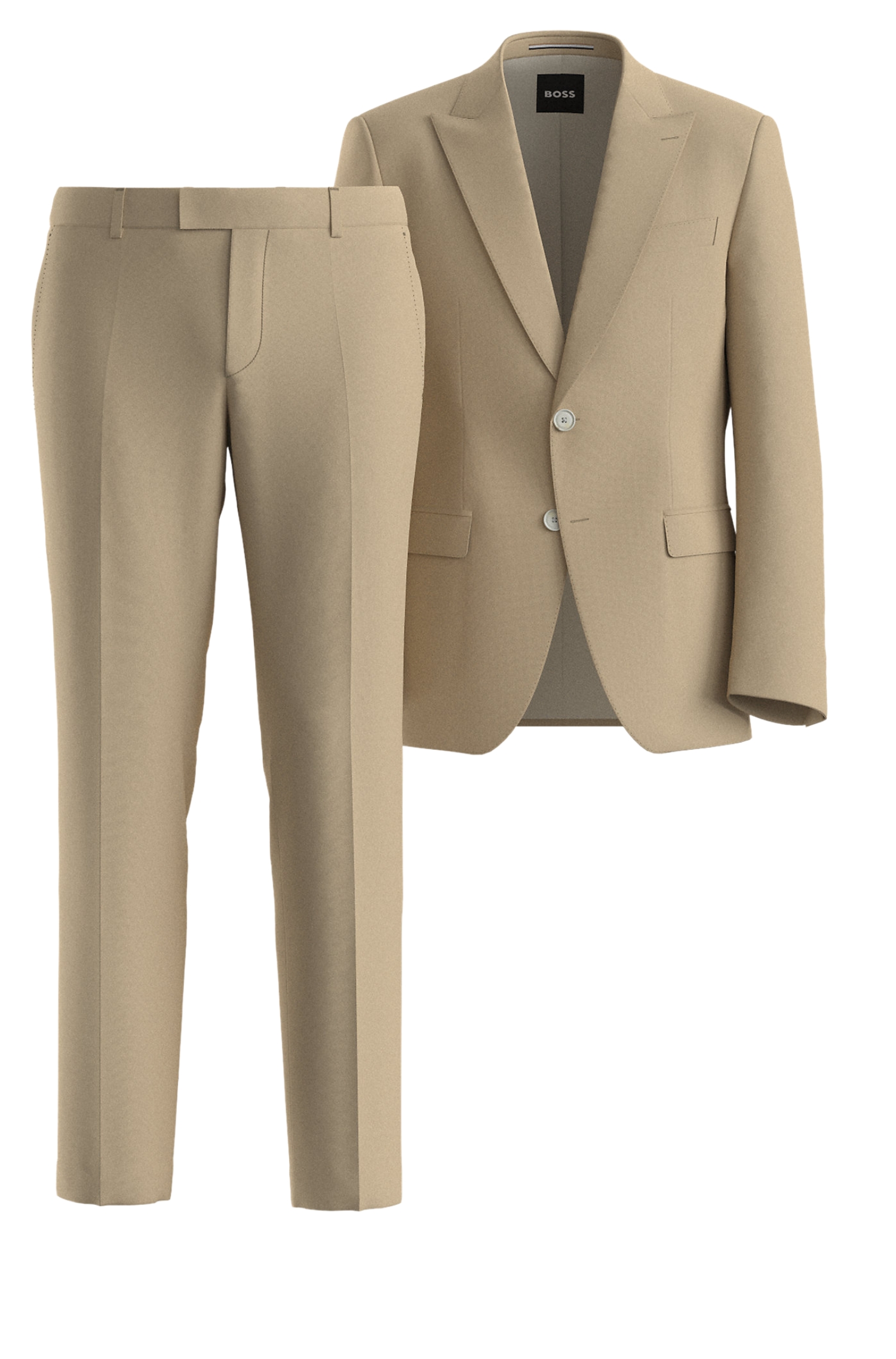 This BOSS mens tailored suit embodies modern elegance with a timeless appeal. Crafted in a refined beige tone, it consists of a single-breasted jacket with a clean, structured silhouette and perfectly matched trousers with a streamlined fit.