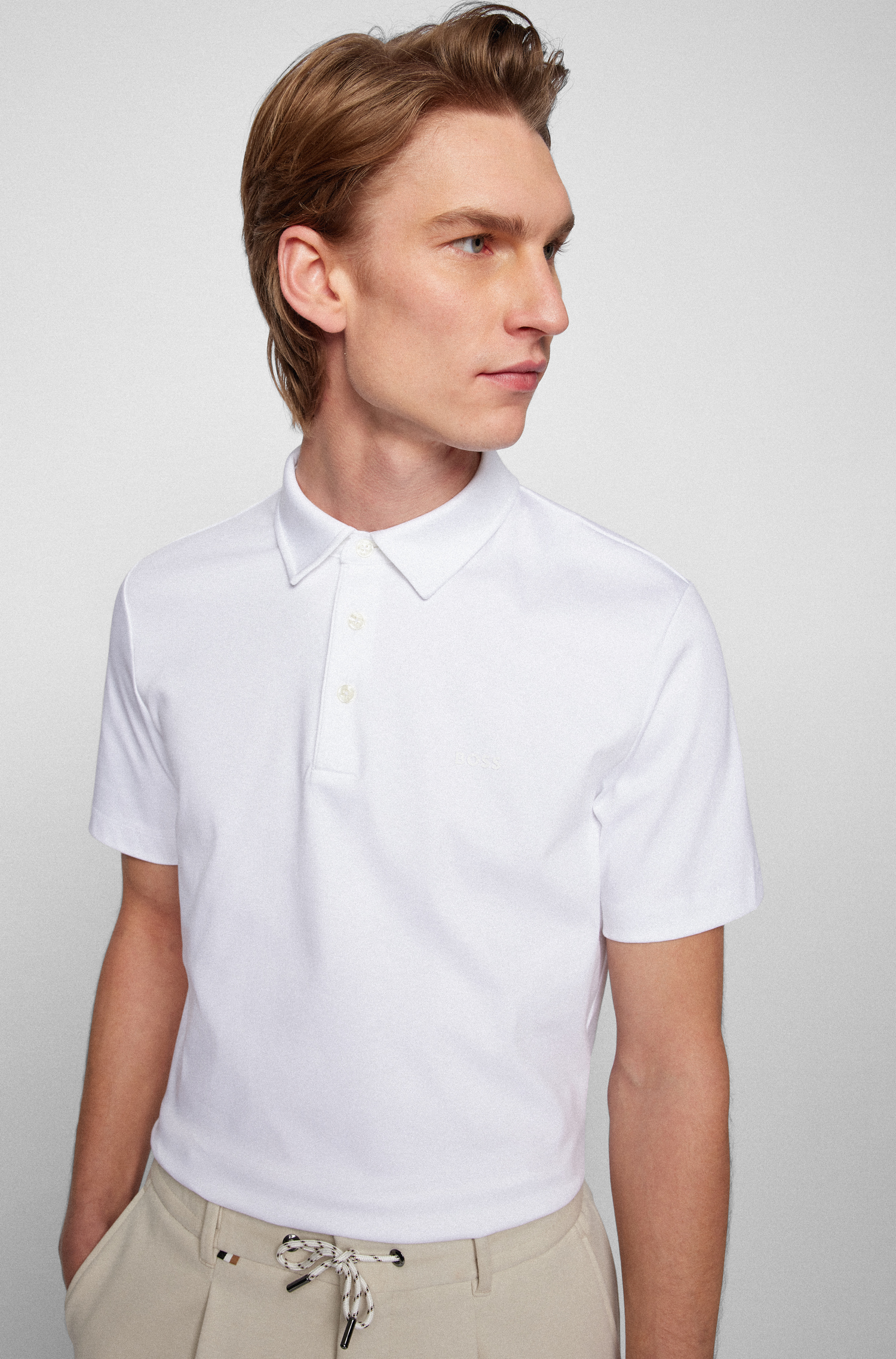 An understated rubberised or tonal BOSS logo at the chest signs off the design, while the quality cotton construction offers reliable durability through repeated washes. This polo is ideal for weekends, travel and polished off-duty looks where comfort and a neat finish are equally important.