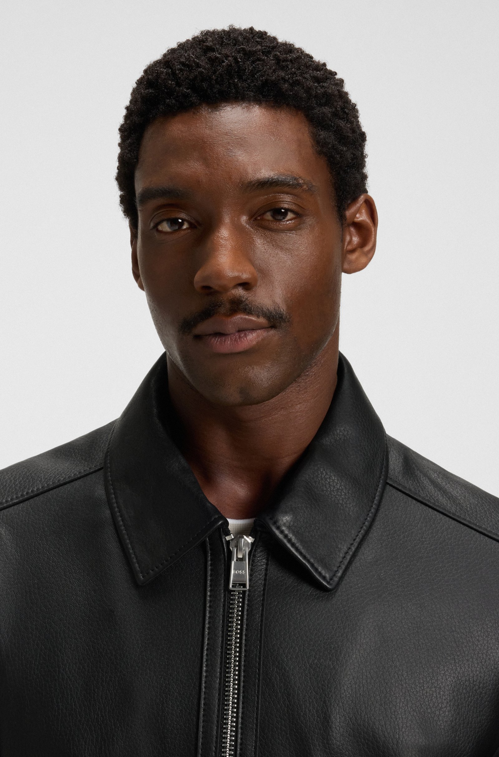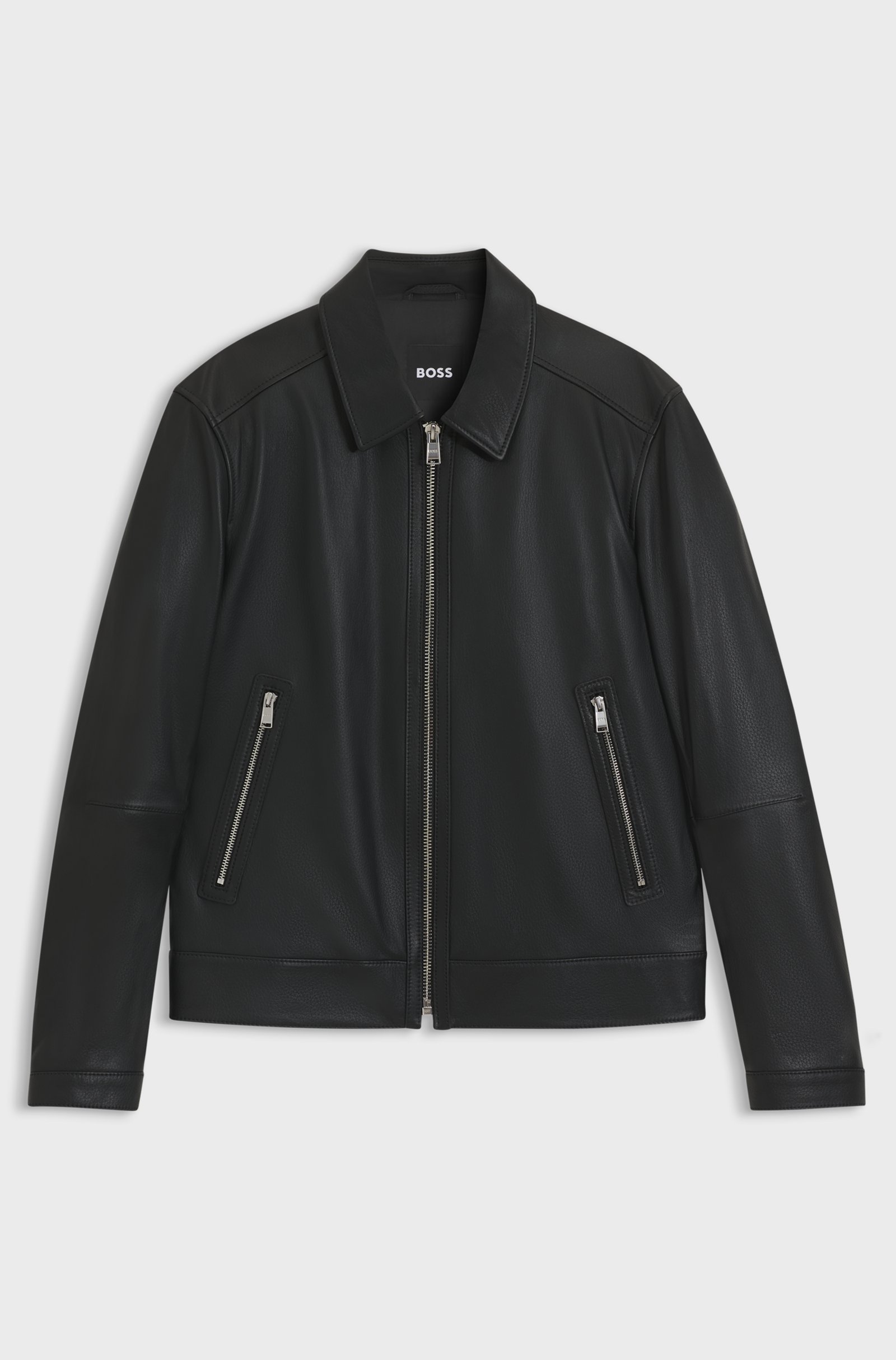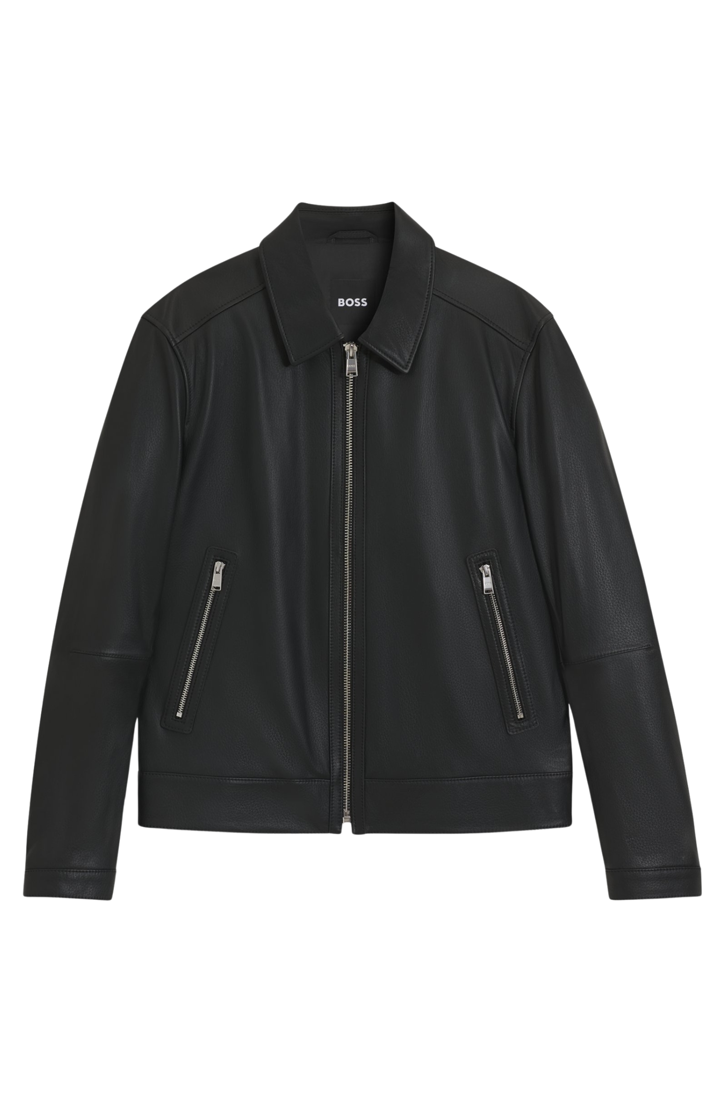 Crafted from premium lambskin leather, the BOSS Mens regular fit jacket combines timeless elegance with everyday comfort. The soft, durable leather features a subtly glossy finish that enhances its refined, contemporary appearance. A classic shirt collar and front zip closure lend structure and sophistication, making it perfect for both casual and smart occasions.