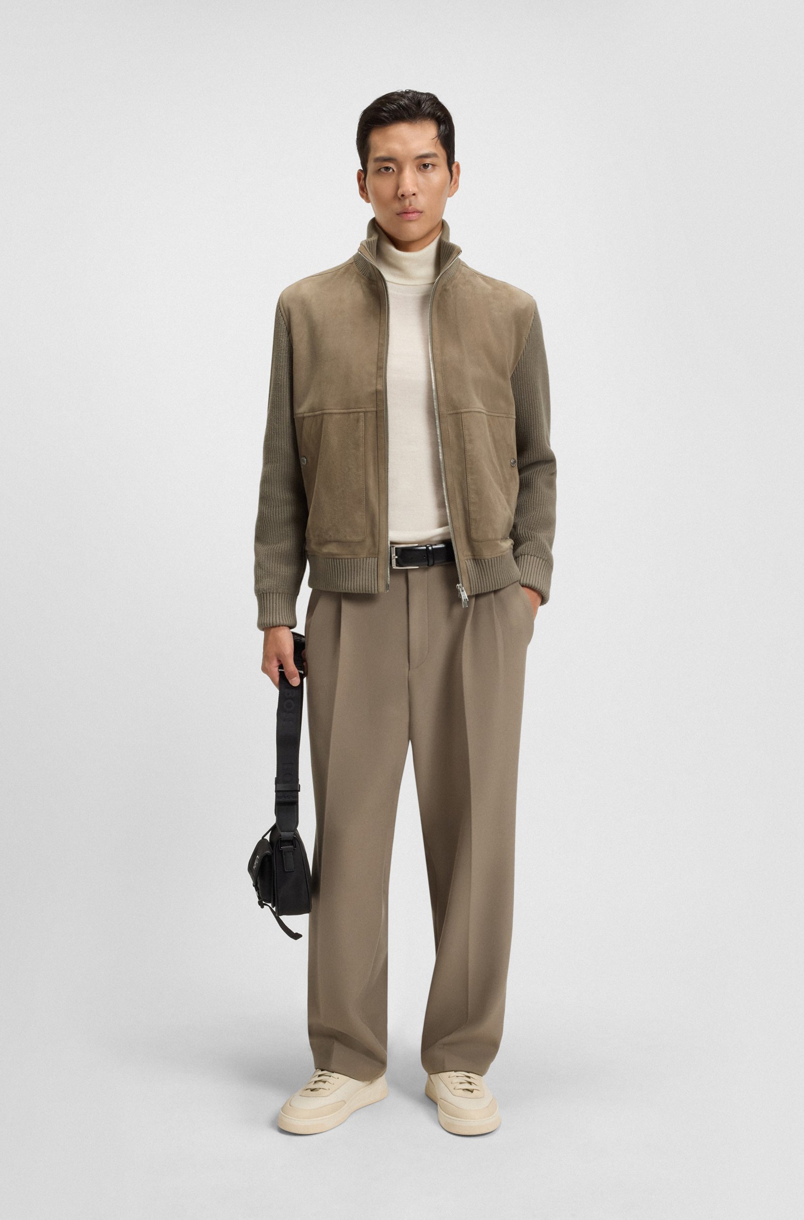 BOSS Suede Leather Jacket with Cotton Blend Sleeves Refined Hybrid Style