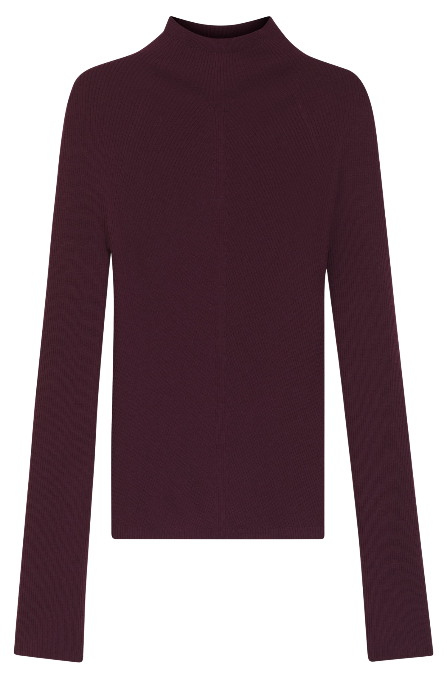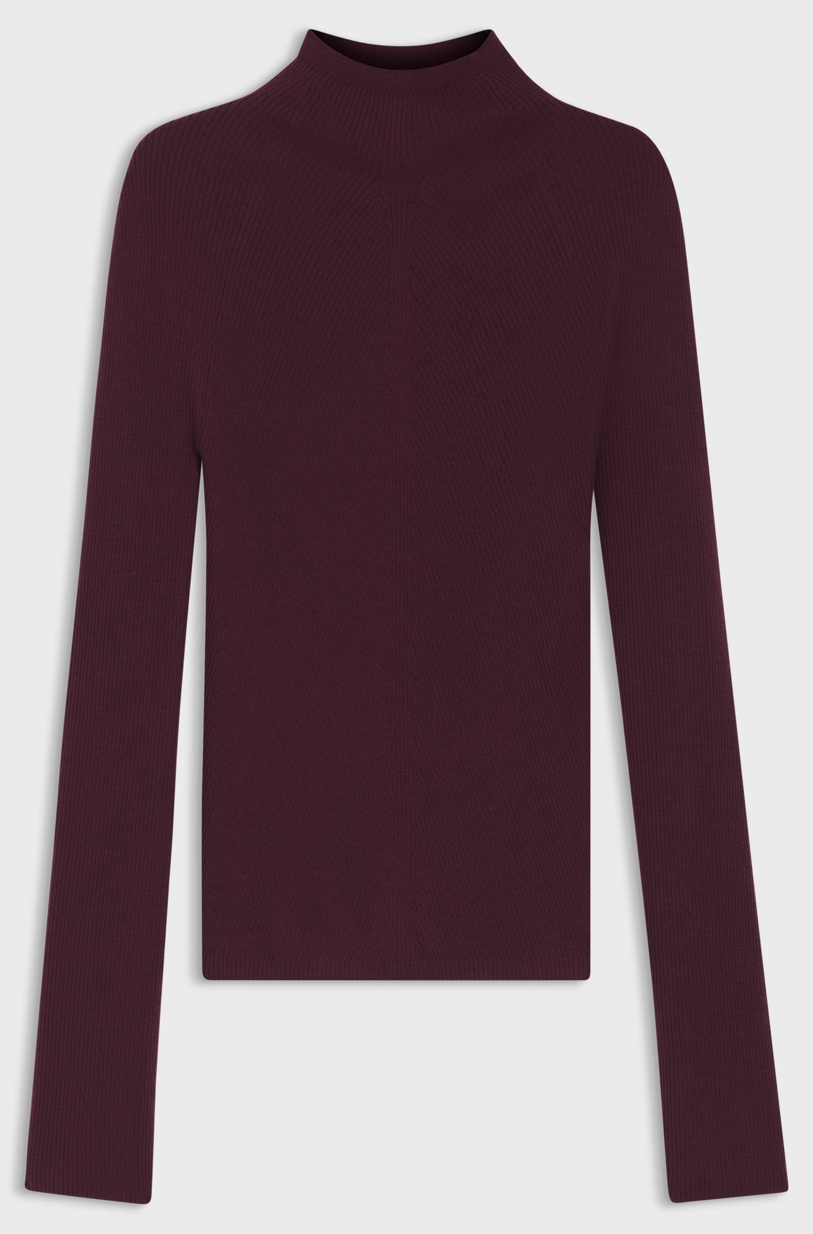 Known for its thermoregulating and breathable properties, merino wool ensures optimal comfort across all seasons. The soft mock neck lends a sophisticated, minimalist appeal, ideal for layering under blazers, coats, or pairing with tailored trousers and midi skirts.