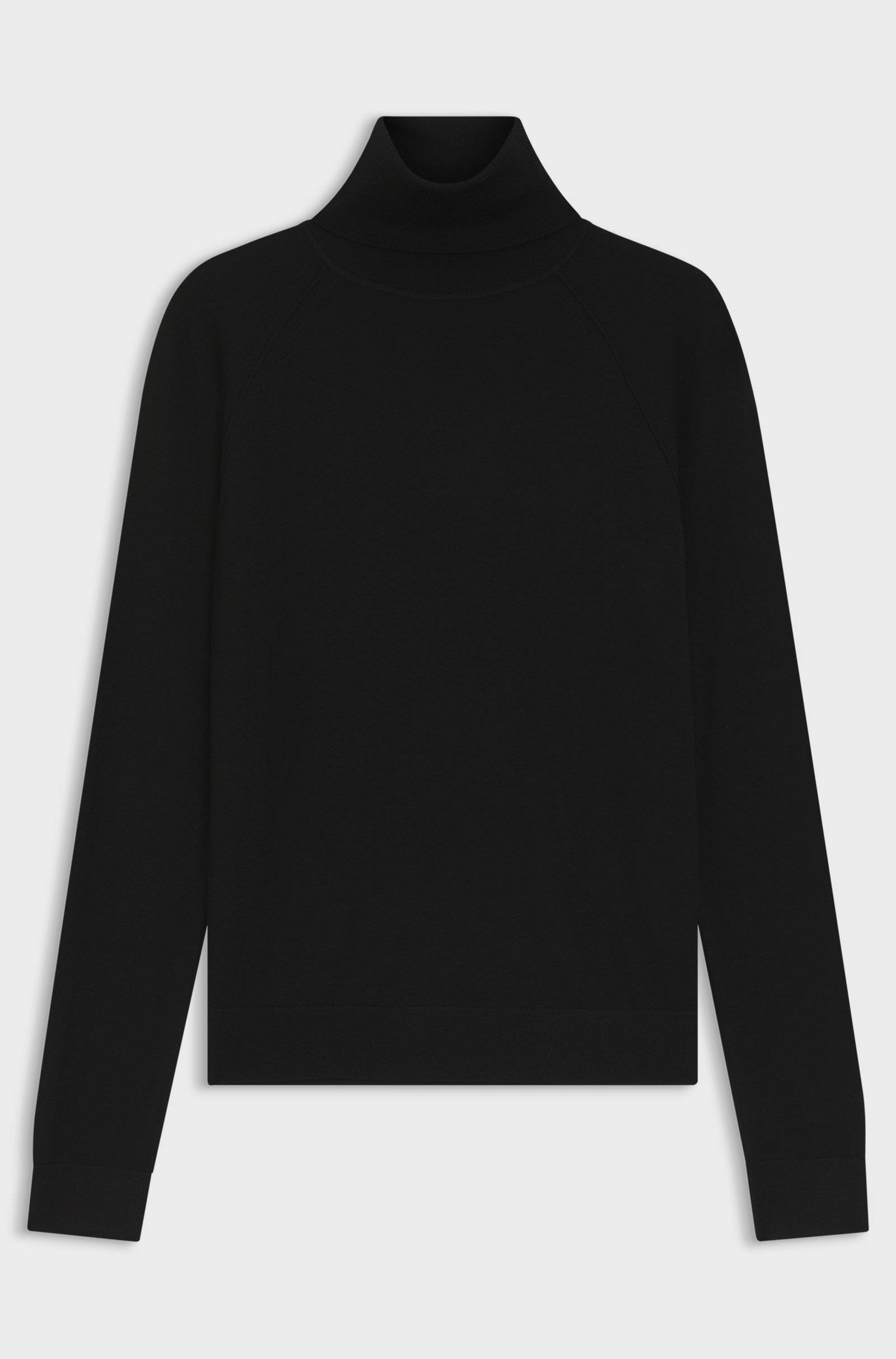 The slim fit flatters the silhouette without sacrificing comfort, making it ideal for wearing alone or layered under tailored blazers, coats, or jackets. As part of BOSSs sustainable approach, this garment is made from responsibly sourced wool, respecting animal welfare standards.