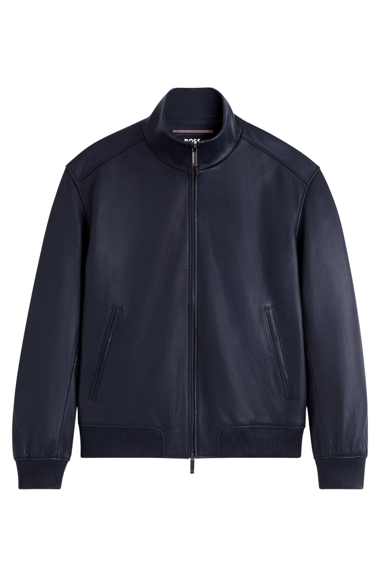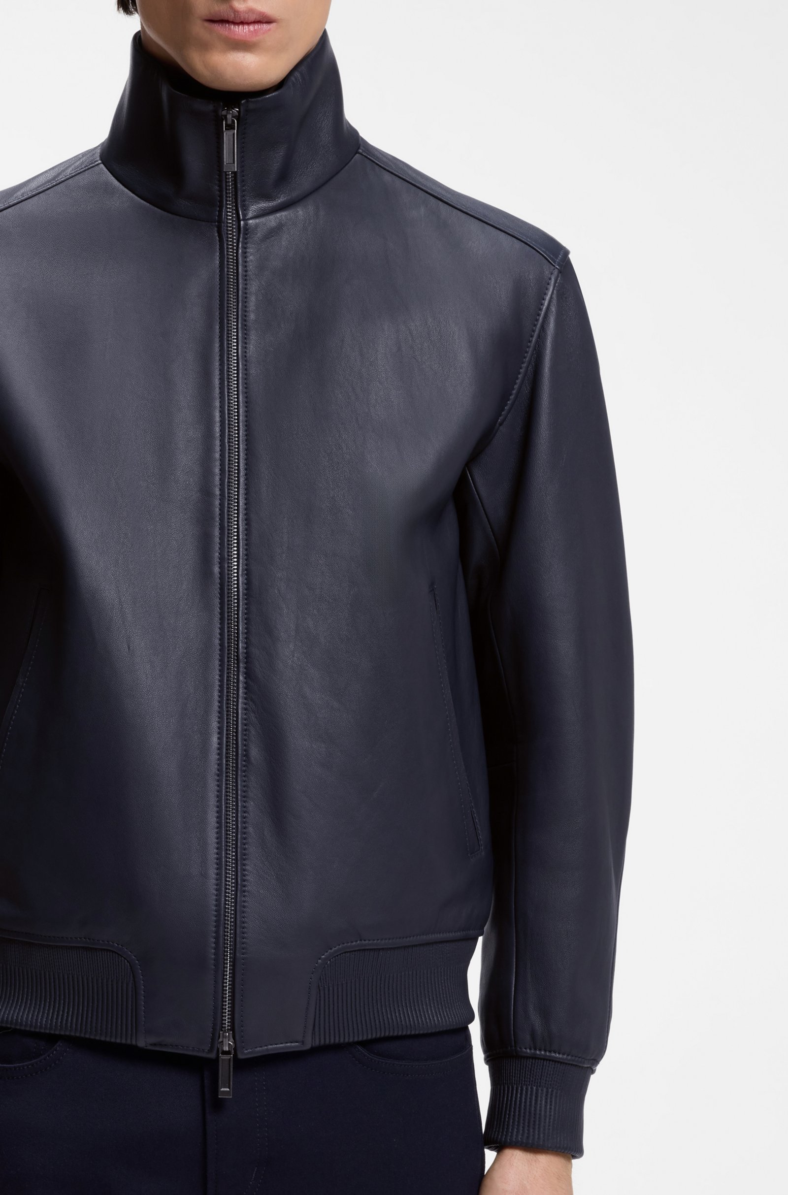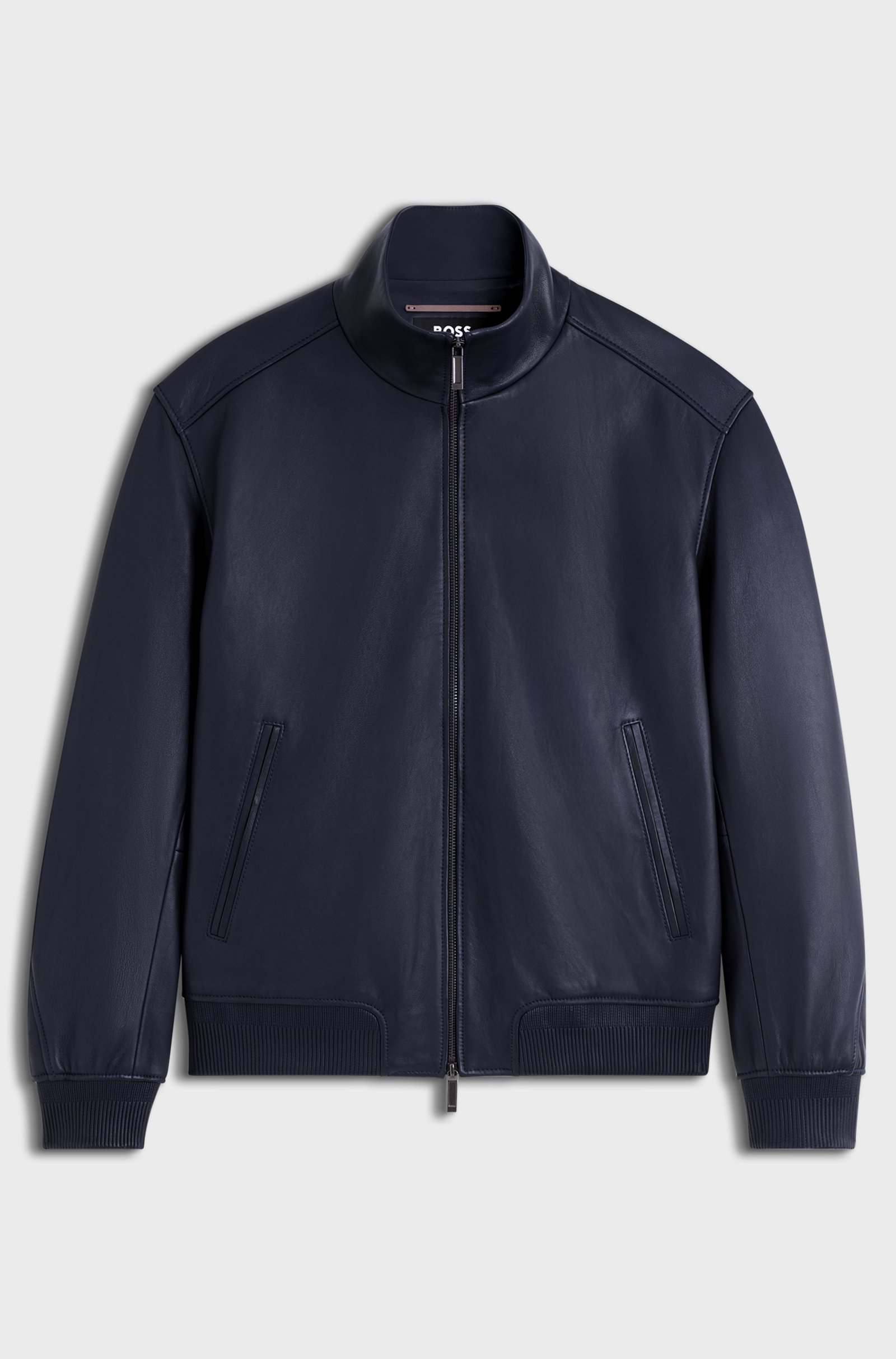 This BOSS x ASTON MARTIN leather jacket is designed as a true style investment, combining the clean lines of a modern leather jacket with BOSS tailoring and Aston Martin cues. Crafted from 100% lamb leather, it offers a supple, luxurious handfeel and a smooth surface that will age beautifully over time.