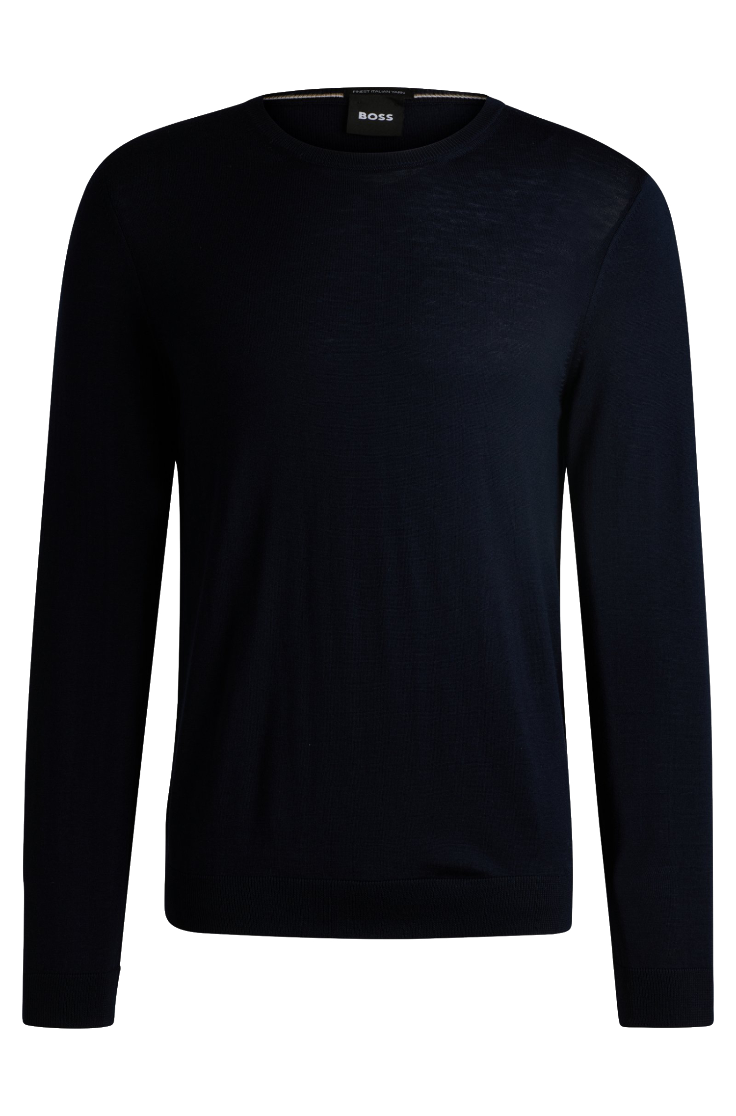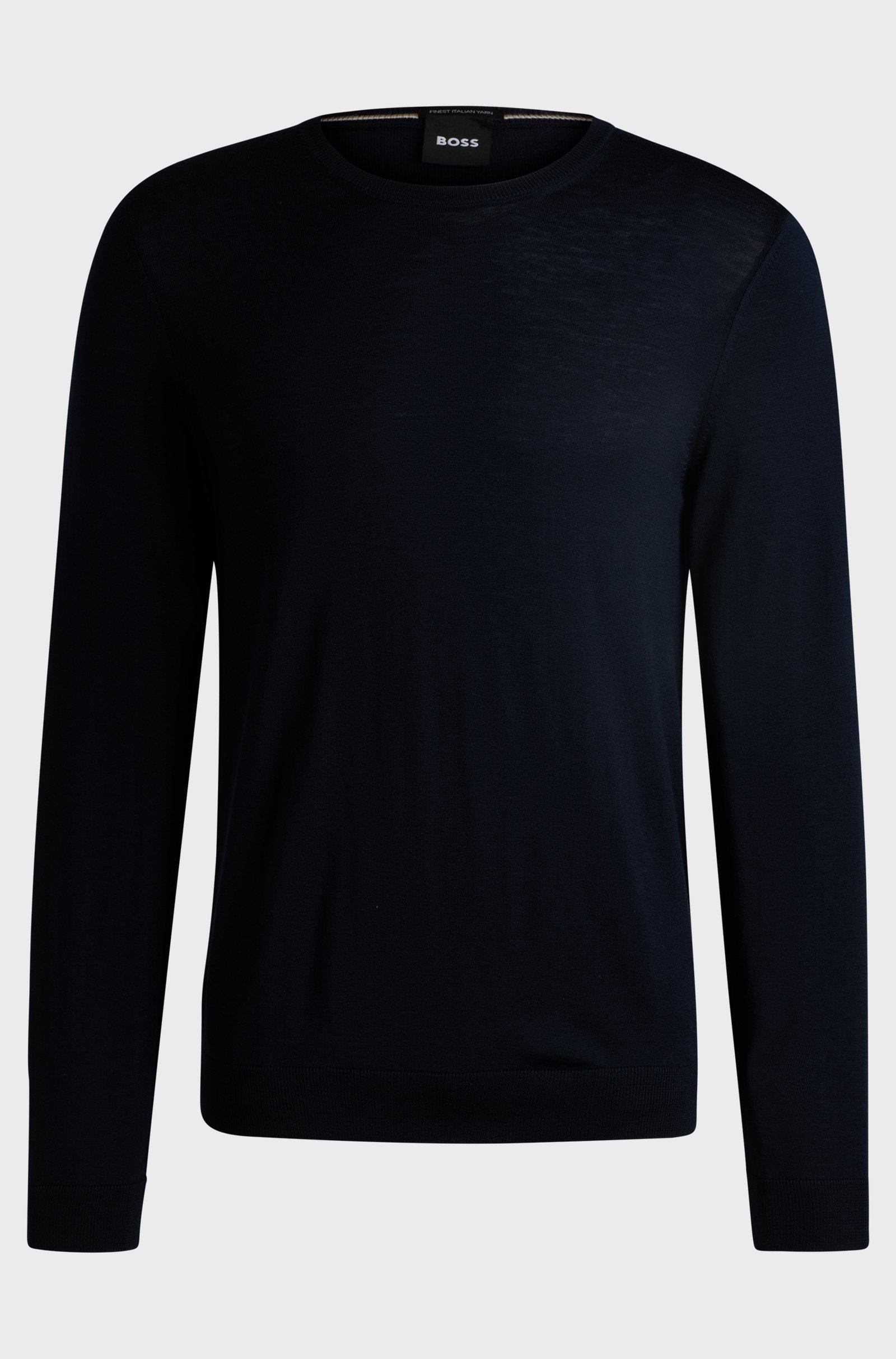 A soft and breathable BOSS Men's sweater. This slim fit crew-neck garment is made from virgin wool. This garment is made from responsibly farmed wool. To us, being a responsible farm means being mulesing-free and meeting the standards set by the Five Freedoms for animal protection. Slim fit Crew neck Long sleeve Ribbed cuffs Standard length Quality: 100% virgin wool
