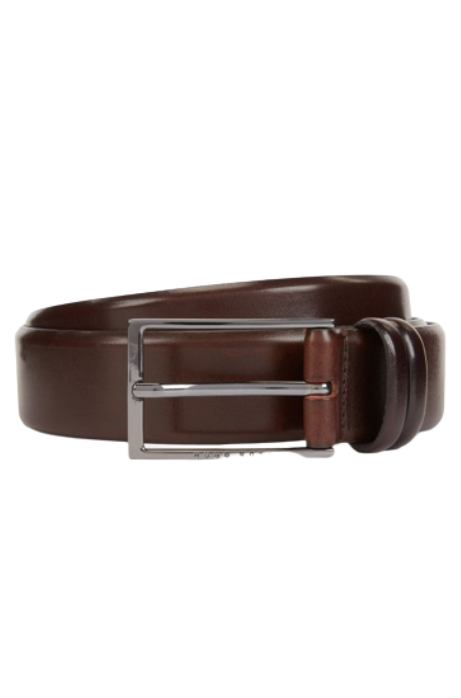 This elegant and versatile BOSS Men's belt with partial lining is made of high-quality, vegetable-tanned leather. With a delicate two-tone effect, this belt has a shiny gunmetal-coloured buckle and a subtle engraved logo. Add it to your basic wardrobe to add a flawless finishing touch to any outfit.