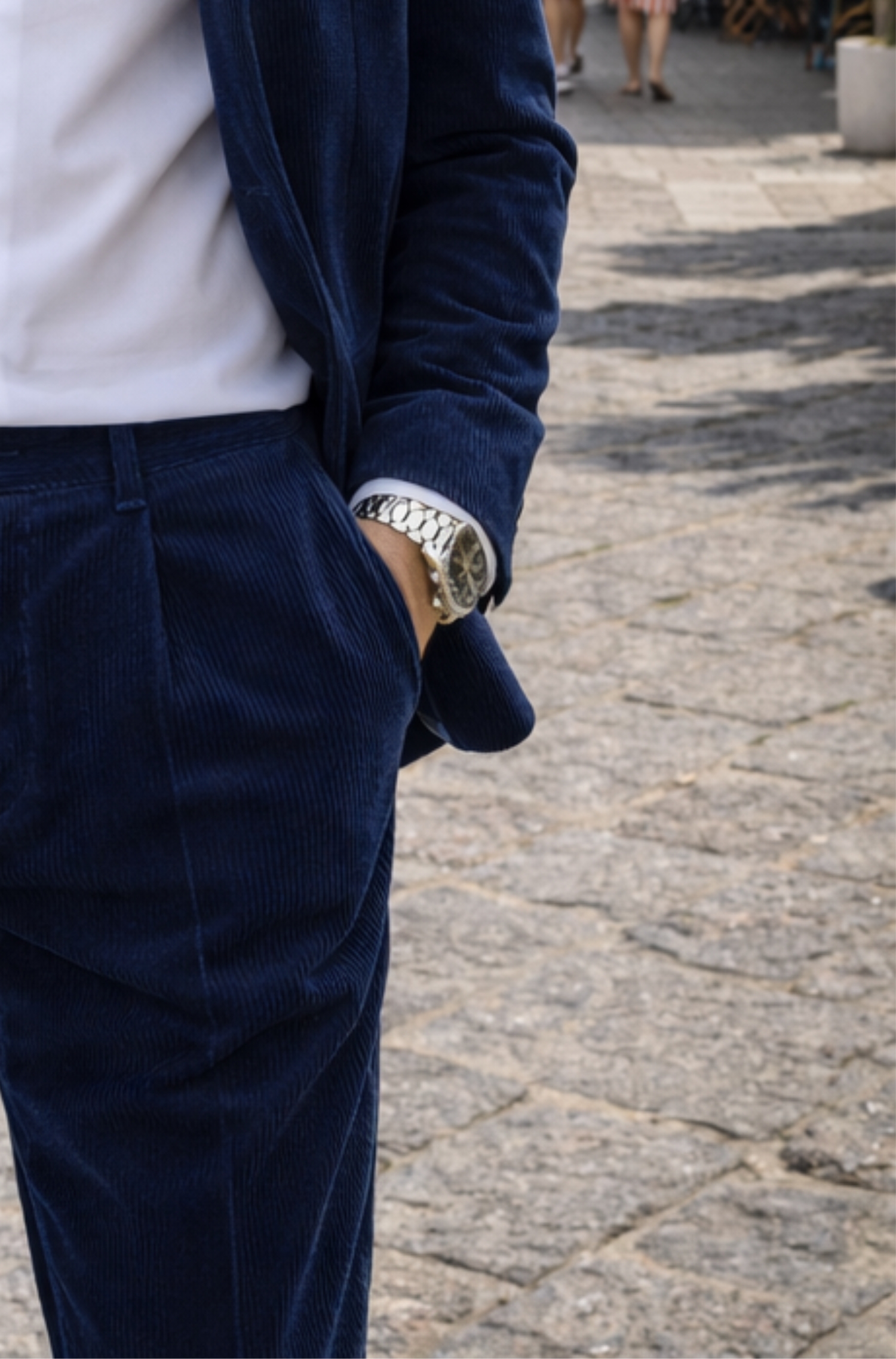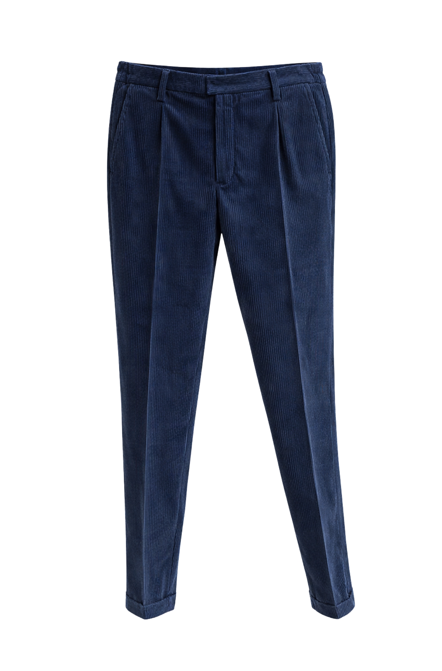 Briglia 1949 BG03 men's trousers in corduroy (98% cotton, 2% elastane) with cotton lining, navy blue color. Distinctive ribbed texture, stretch comfort fit and Made in Italy construction. Versatile informal elegance with character.