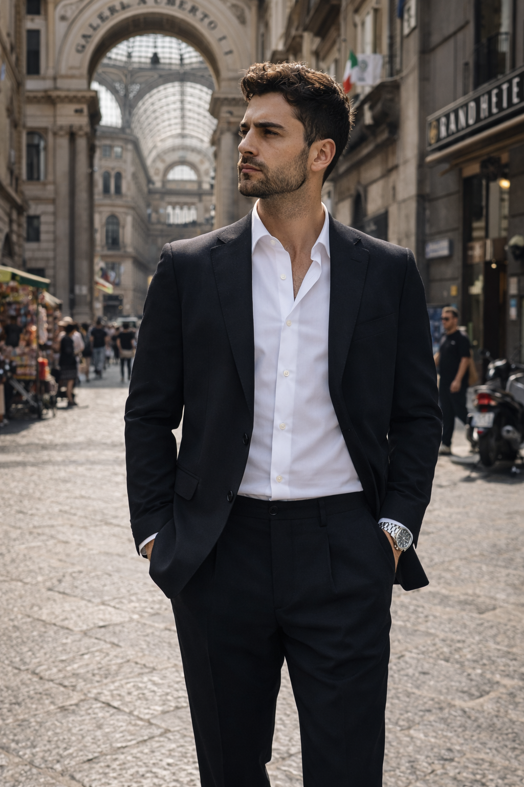 Black Portofinos 400120 Briglia 1949 trousers are an essential investment for men seeking maximum formal elegance combined with contemporary comfort. The nearly pure stretch virgin wool composition makes them perfect for tuxedos, formal suits, elegant business outfits, or sophisticated evening looks. Black makes them the most versatile and indispensable piece in quality men's wardrobe, capable of transcending every season and occasion with timeless elegance.