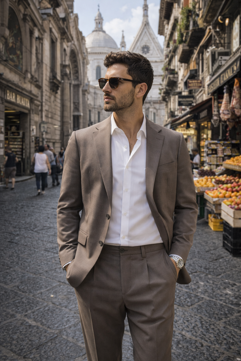 Taupe color (warm medium grey with beige undertone) represents a sophisticated, versatile shade, perfect for creating elegant yet less formal looks than anthracite grey or navy. Taupe is ideal for transitional seasons and pairs easily with: