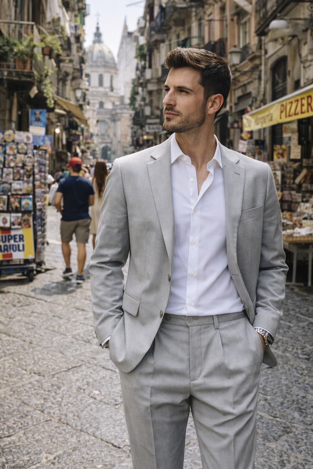 Briglia 1949 Portofinos men's trousers in technical blend of virgin wool fleece (55%) and polyester (45%) with cotton lining, light grey color. Tailored comfort fit, refined masculine cut and Made in Italy construction. Modern performance and versatile business elegance.