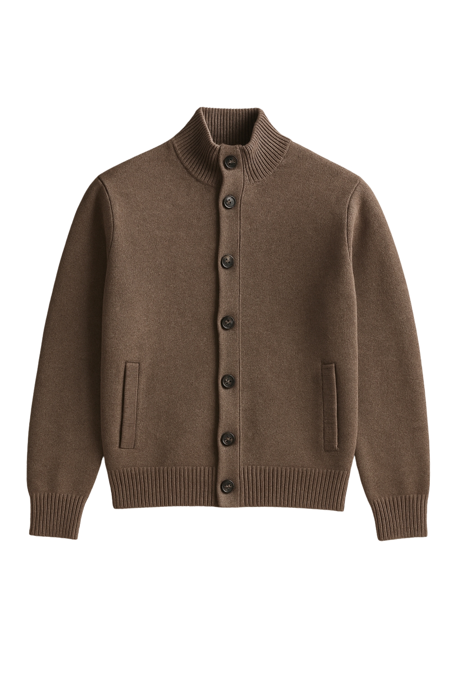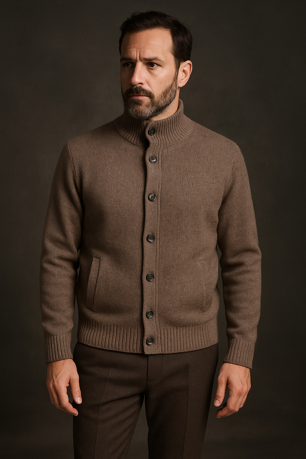 Cavalieri Milano Wool Knit Cardigan Mandarin Collar Brown