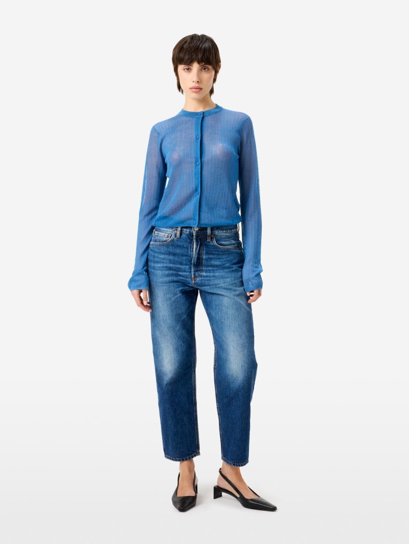 A full button fly underlines the authentic denim attitude and completes this Made in Italy five-pocket construction, while the use of recycled cotton adds a more mindful dimension without sacrificing structure and durability. Versatile and easy to style, Bella is a key indigo mom fit jean to pair with T-shirts, jersey tops, oversized shirts or sharp blazers in everyday wardrobes.