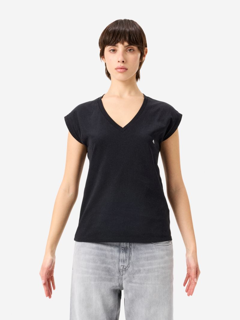 Cycle Jam V-neck T-shirt in garment-dyed cotton jersey black with plated logo