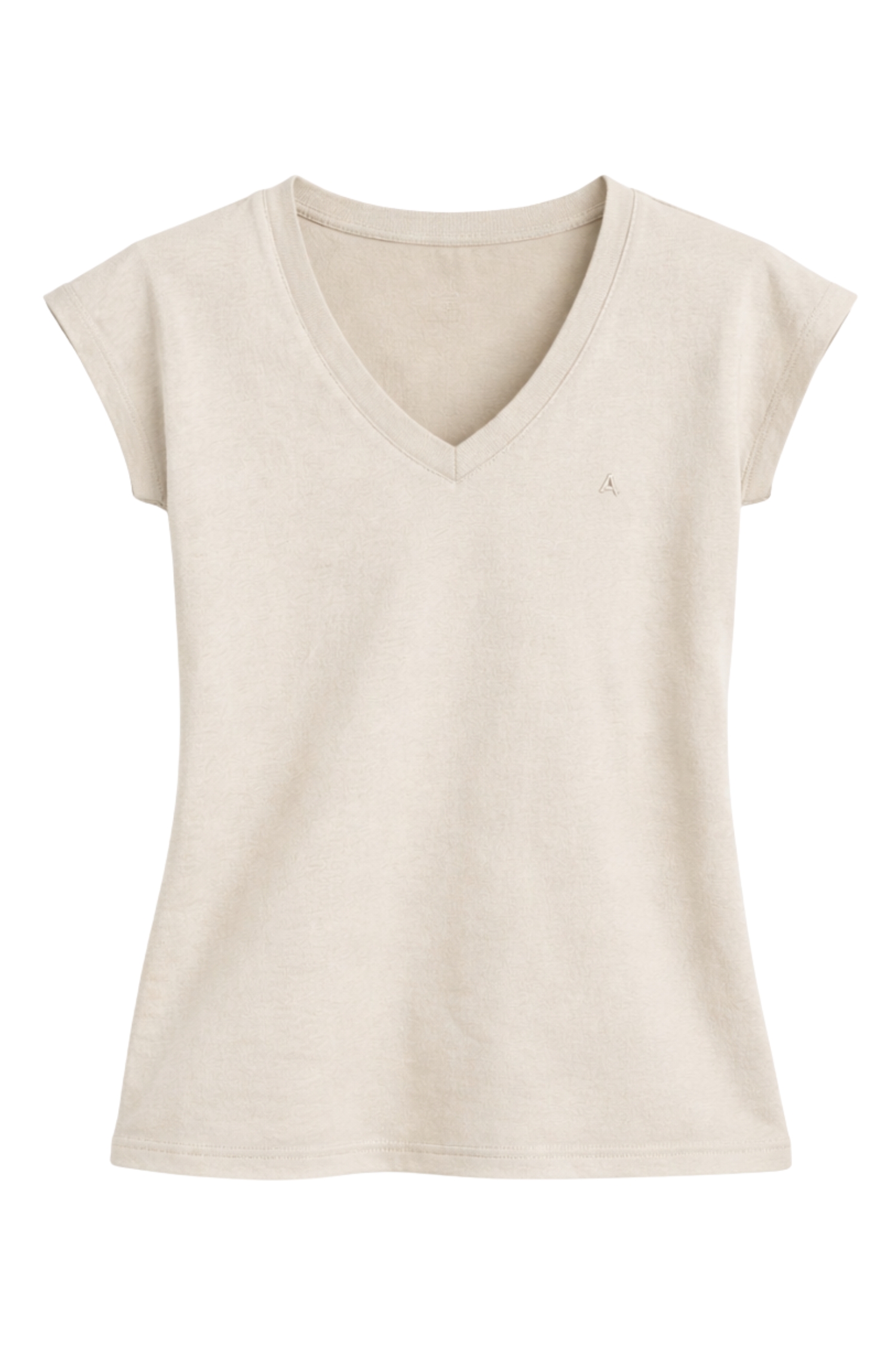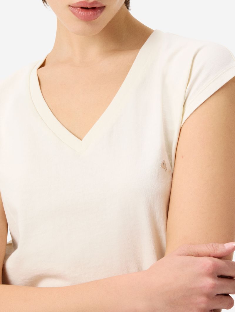 A V-neckline flatters the neck and décolleté with a simple, feminine line, while cap sleeves lighten the shoulder and add a delicate design twist to the minimal construction. The front is finished with the signature plated Cycle logo on the chest for a discreet yet recognisable branding detail.