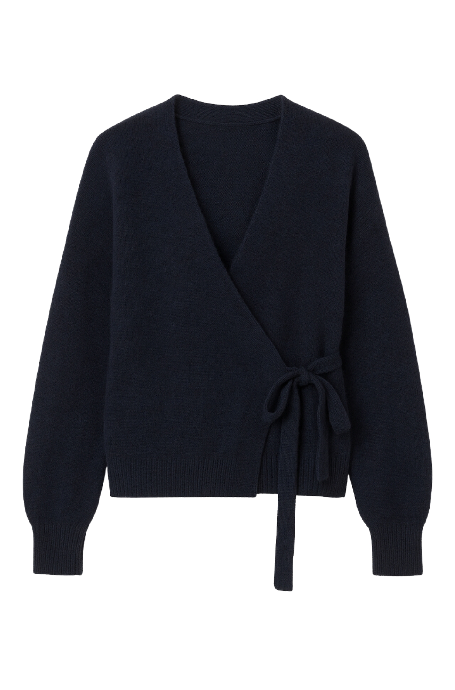 Crafted from GRS-certified Italian yarn made of recycled fibres and mulesing-free superfine alpaca, this piece combines warmth, softness, and sustainability. The wide cut, V-neckline, and side tie closure create a flattering and feminine silhouette, while the navy hue adds classic sophistication. With its jersey knit texture and dropped sleeves, the Berta cardigan transitions seamlessly from casual to elegant looks, pairing beautifully with skirts, dresses, or denim. A true essential for refined winter layering.