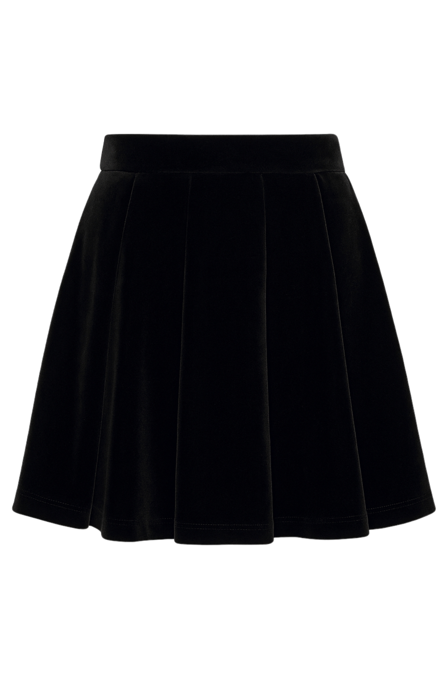 Cut in a high-waisted A-line silhouette, this black short skirt combines timeless charm with modern flair. Made from a blend of viscose and polyamide, the fabric is naturally soft, smooth, and durable, offering a rich texture and elegant drape. Featuring a back zip fastening for a seamless finish, its perfect for pairing with sparkly tops during the festive season or oversized shirts for effortlessly chic everyday looks.
