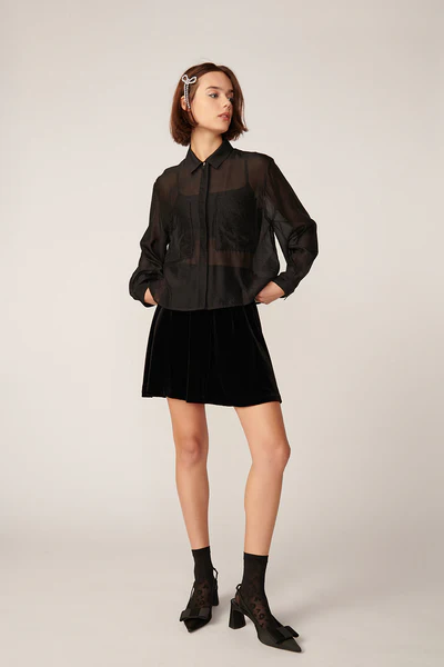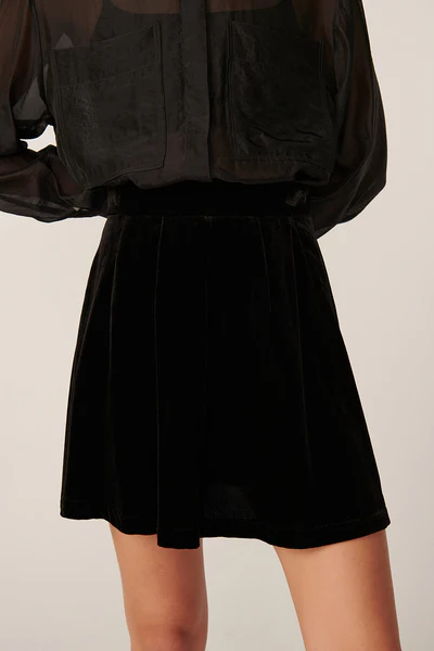 Des Petits Hauts Irelia Noir Viscose Velvet Skirt