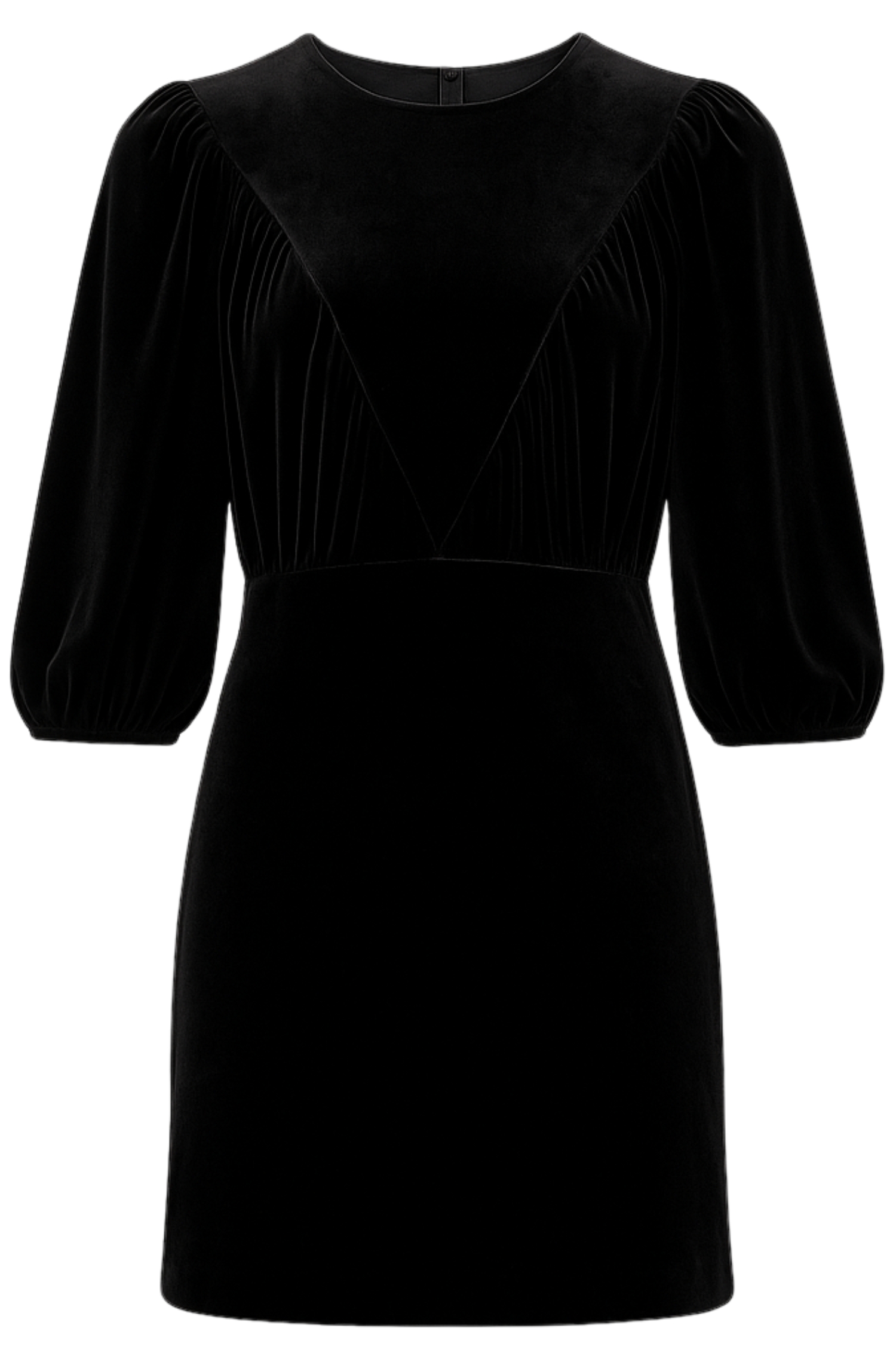 Crafted from viscose and polyamide velvet, it offers a naturally soft feel and deep, luminous sheen. This short black dress features mid-length balloon sleeves, V-shaped cutouts at the front and back, and a round neckline for a flattering, sophisticated shape. The invisible side zip ensures a smooth, tailored finish. Perfect for festive evenings, elegant dinners, or special occasions, this dress pairs effortlessly with heels or ankle boots for an alluring Parisian look.