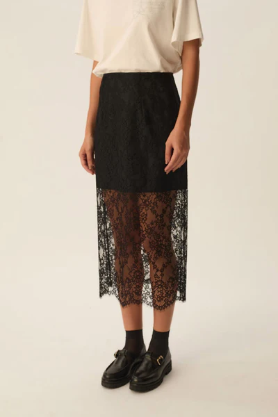 Des Petits Hauts Sanary Noir Cotton Lace Skirt