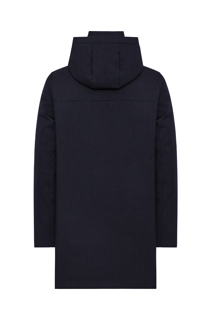 Its wool-effect diagonal texture adds a touch of elegance, making it ideal for urban use and changing weather conditions. The stand-up collar with detachable hood, adjustable through a concealed drawstring, offers versatility and comfort, while the neoprene back detail with embossed DUNO logo gives the coat a distinctive signature.