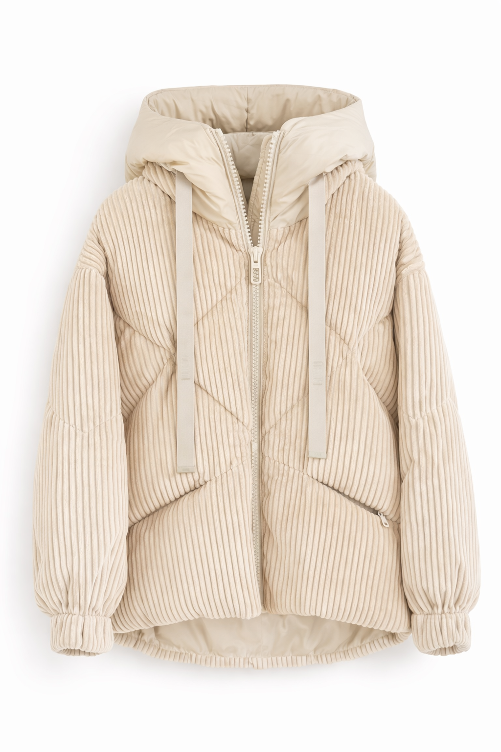 DUNO Jolie Tures Oversized Corduroy Down Jacket in Ivory White with Hood