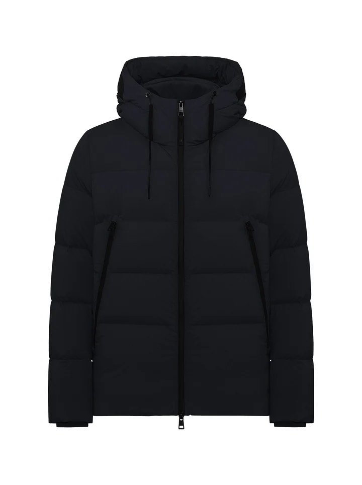 The DUNO Jump Down Jacket is an innovative, high-performance piece designed for those who value both functionality and modern aesthetics. Crafted from superlight bi-stretch technical fabric, it ensures full freedom of movement, crease resistance, and water-resistant protection. The 90% down, 10% feather filling delivers exceptional lightness and thermal regulation, preserving an ideal internal microclimate.