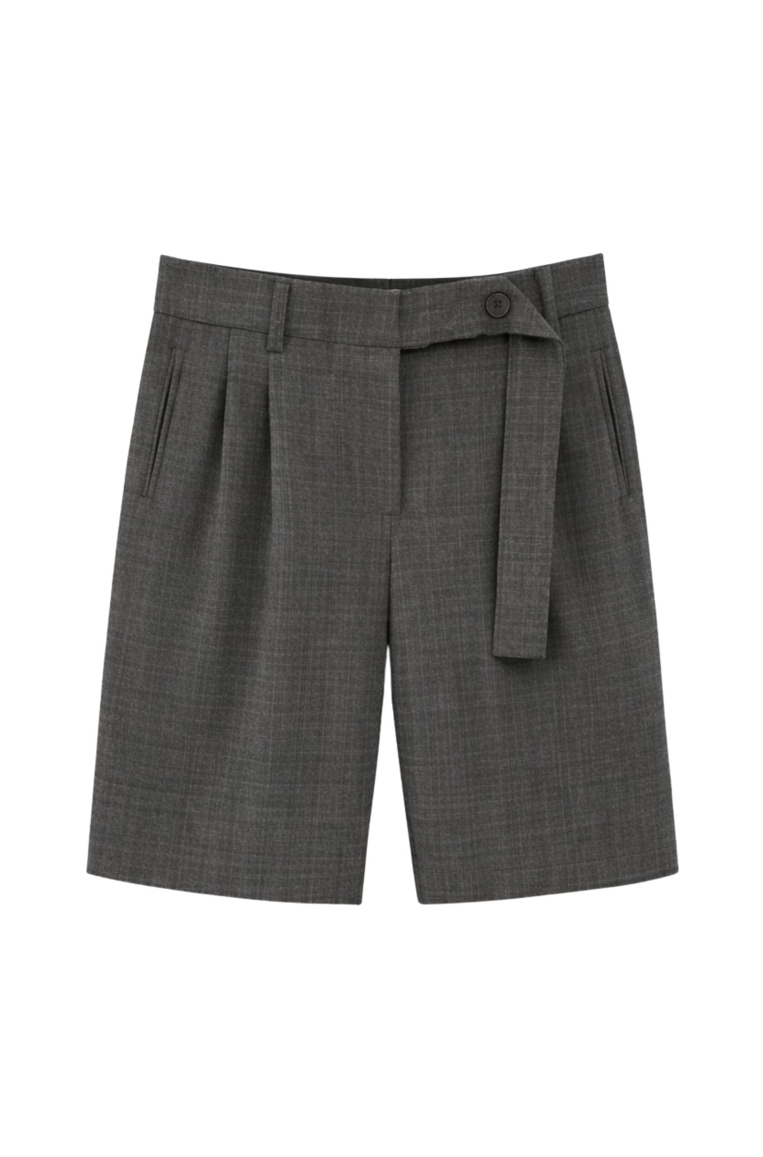 These Grifoni womens bermuda shorts embody contemporary tailoring with a refined aesthetic. Crafted from an elegant grey mélange fabric, they feature a high-waisted design with front pleats and an asymmetrical closure that enhances the silhouette with balance and sophistication.