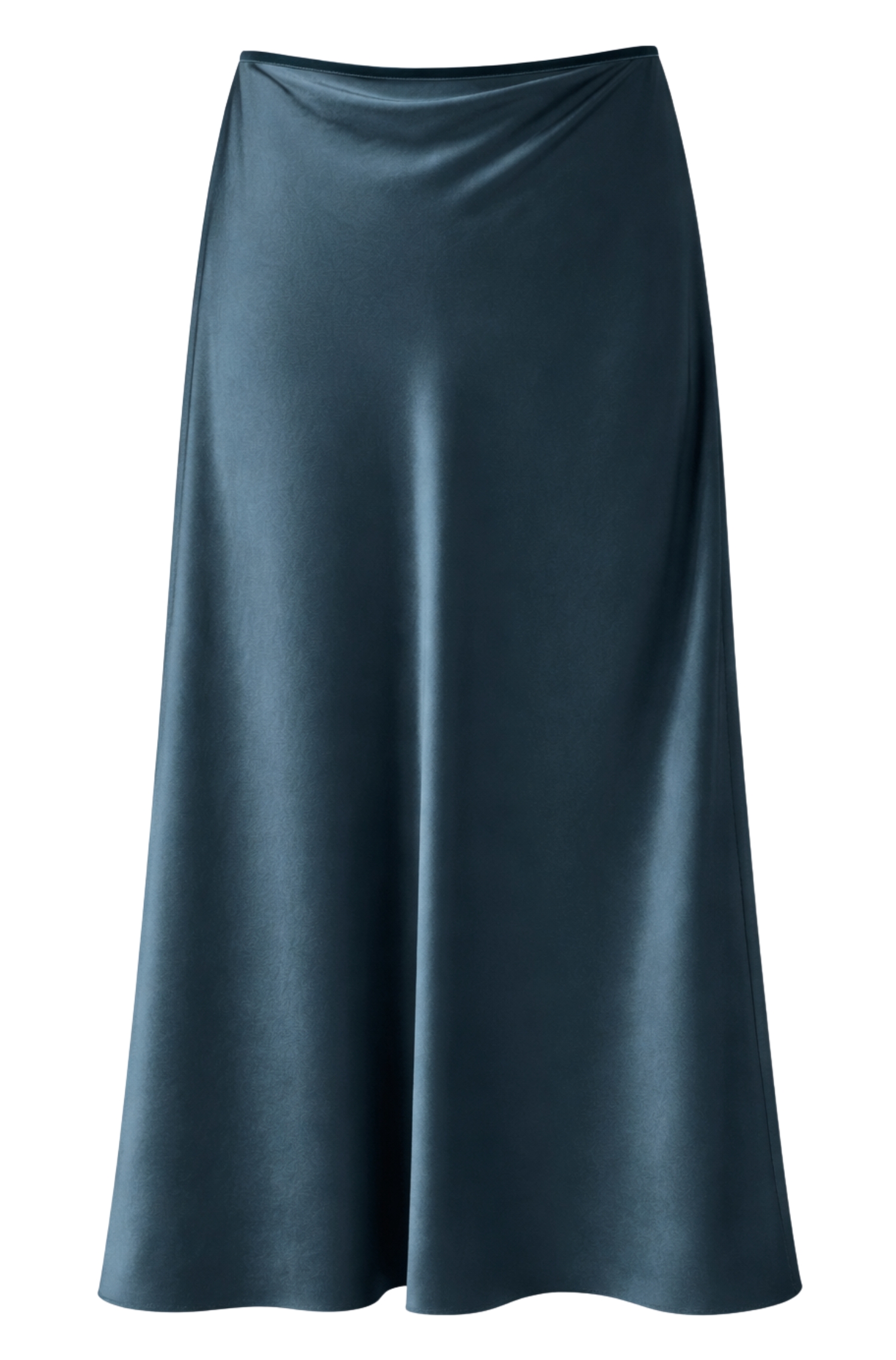 The smooth waistband ensures a comfortable and polished fit, while the midi length makes it suitable for both sophisticated daytime looks and more elegant occasions. The petrol blue shade adds depth and character, maintaining a timeless and contemporary appeal.