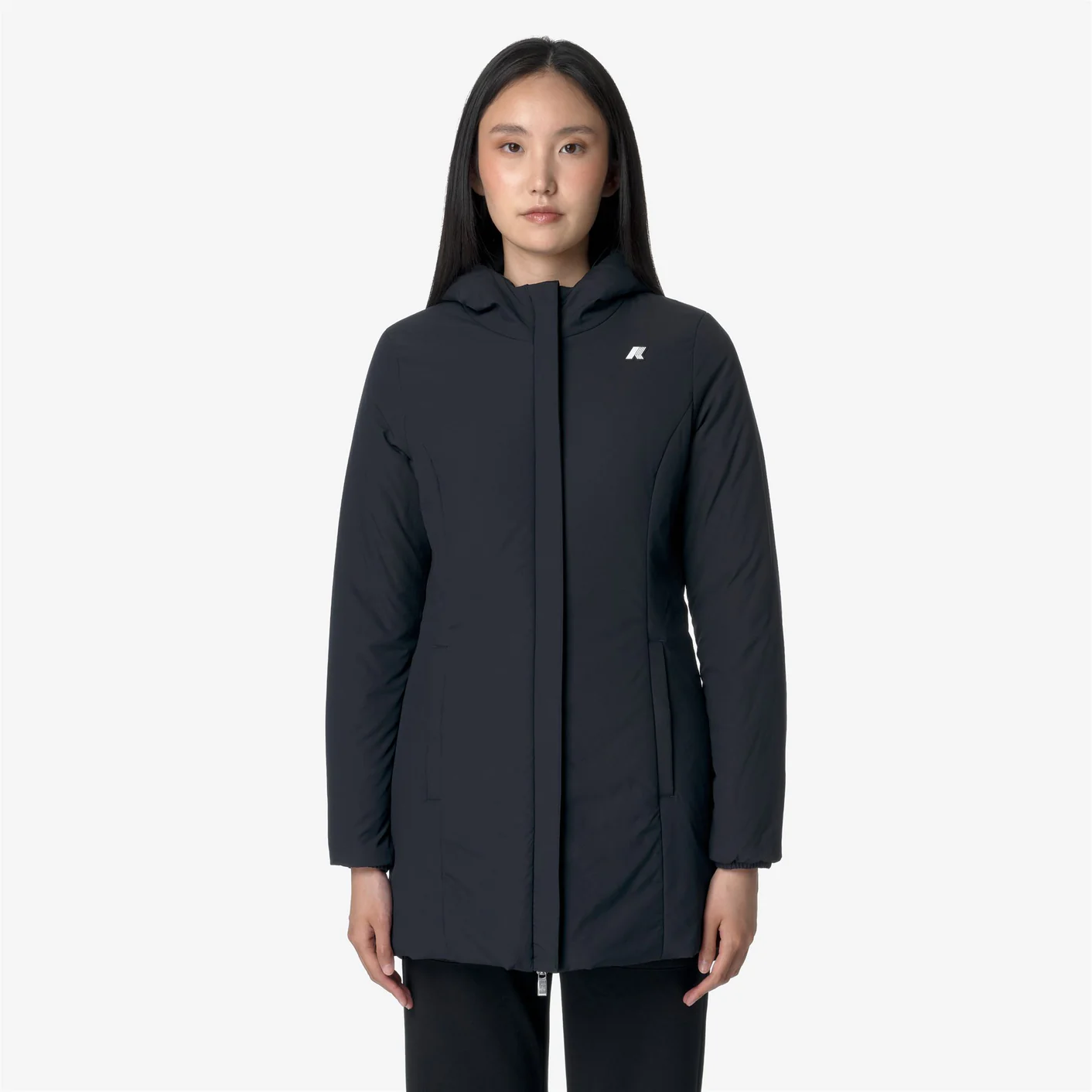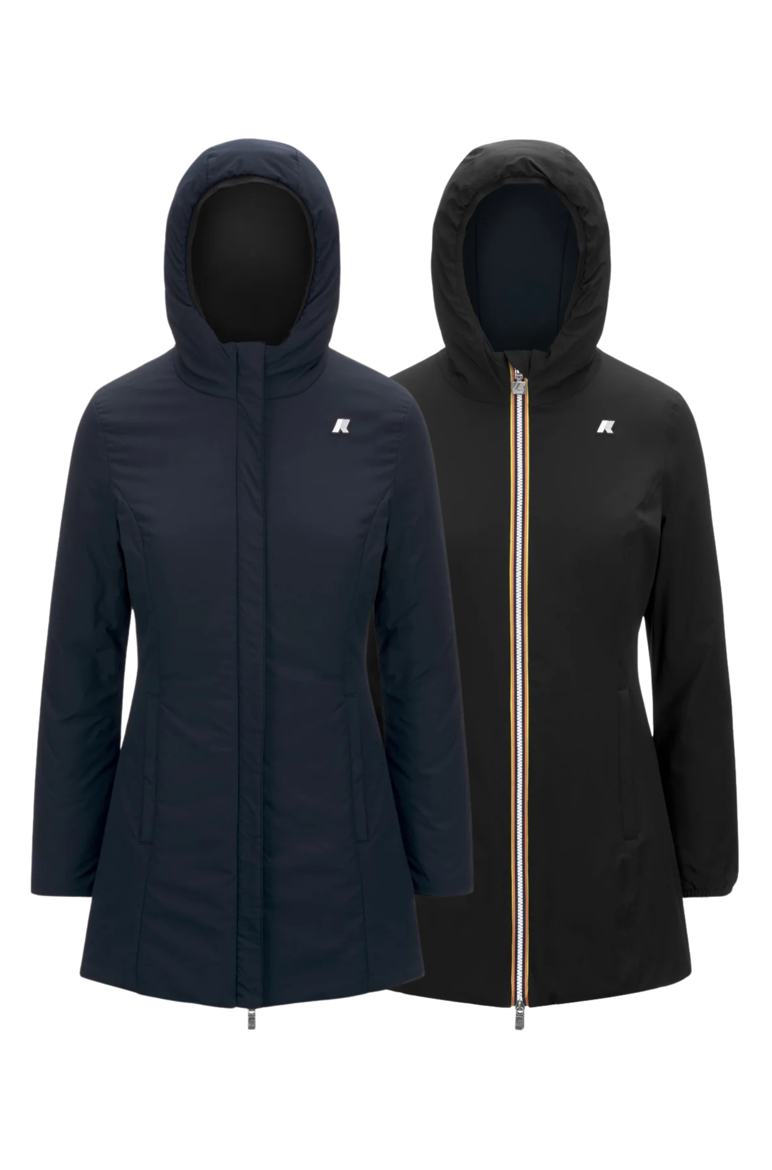 The K-Way Denise ST Warm Reversible is a three-quarter length womens jacket that blends the brands functional spirit with a refined feminine silhouette. Its reversible construction offers two different looks, featuring one side in waterproof, breathable stretch polyester and the other in windproof polyester for enhanced versatility.