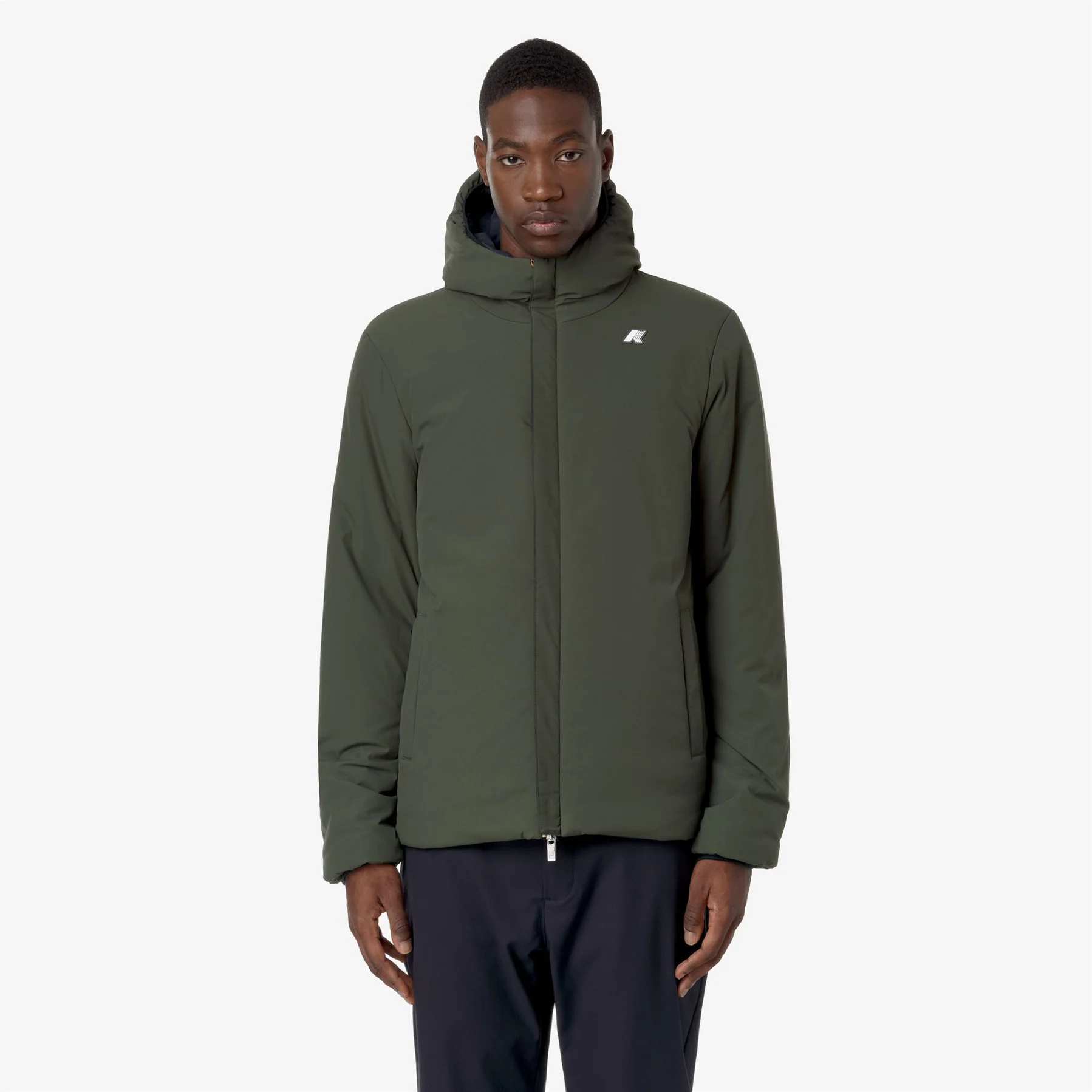 The K-Way Jack ST Warm Reversible Mens Jacket Blue DGreen B is a modern, technical piece designed to deliver maximum versatility and comfort in any weather condition. Its reversible design lets you switch between two distinct styles: one side made from stretch waterproof and breathable polyester, and the other from windproof, water-repellent polyester.