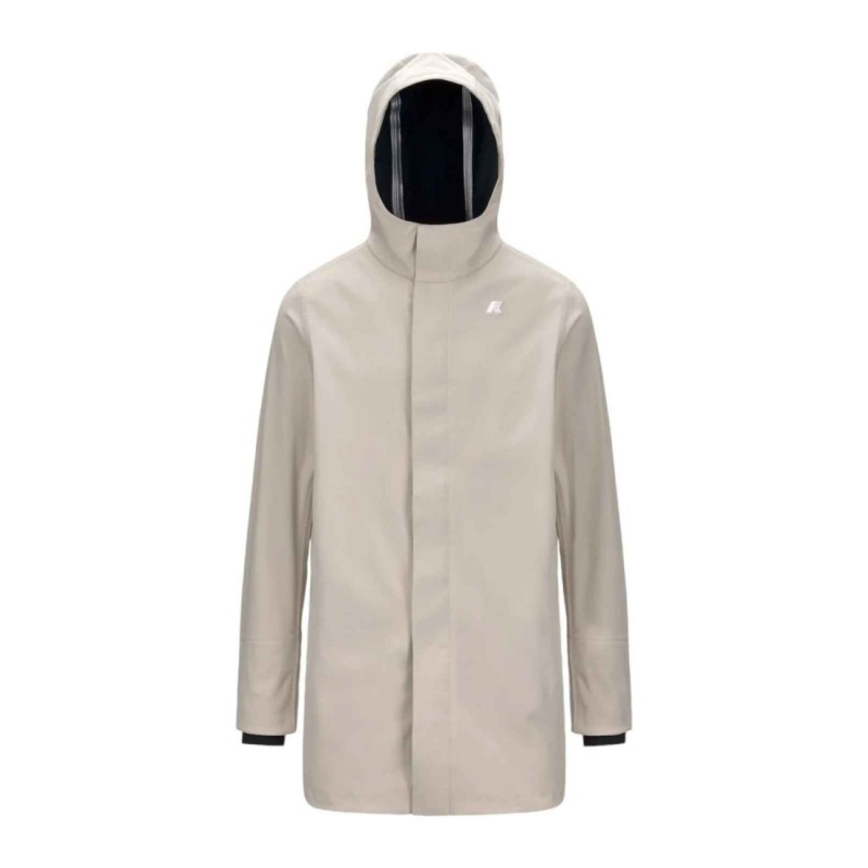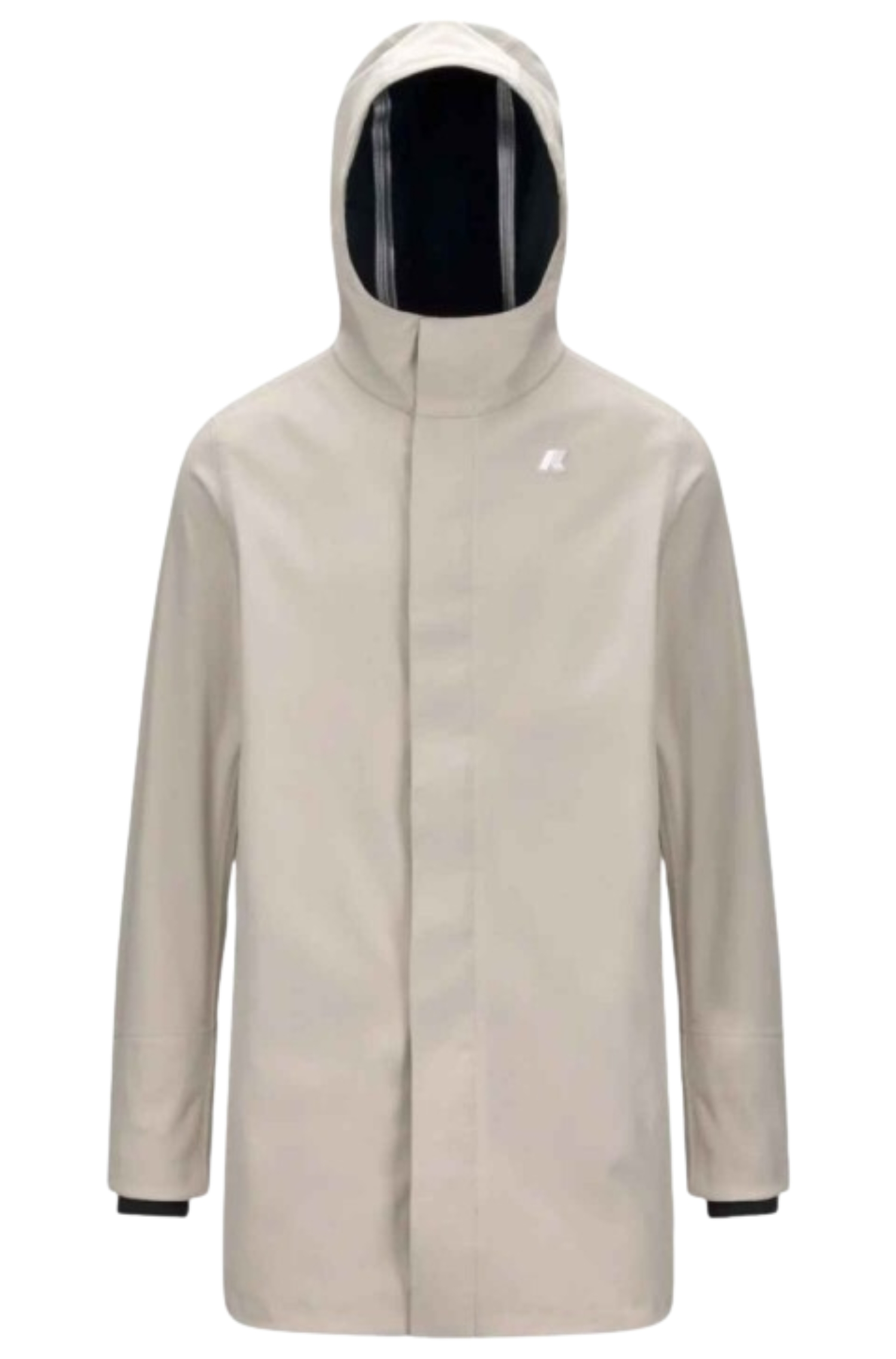 The K-Way Marlyn Bonded Long Mens Jacket K7126UW Beige CashmereBlue Depth is a sophisticated technical coat crafted for comfort and performance. Made from 3-layer waterproof fabric, it features a water-repellent polyester outer shell, an insulating membrane, and a soft micro polar fleece inner layer that provides warmth and comfort against the skin.