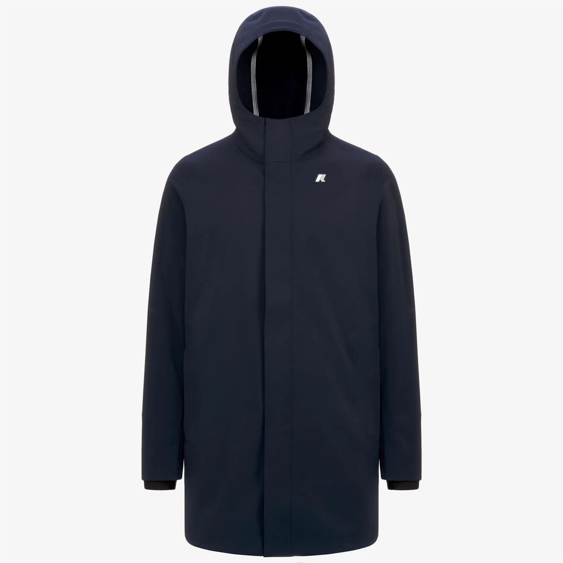 K-Way Marlyn Bonded Long Mens Jacket K7126UW Deep Blue with Insulating Layers