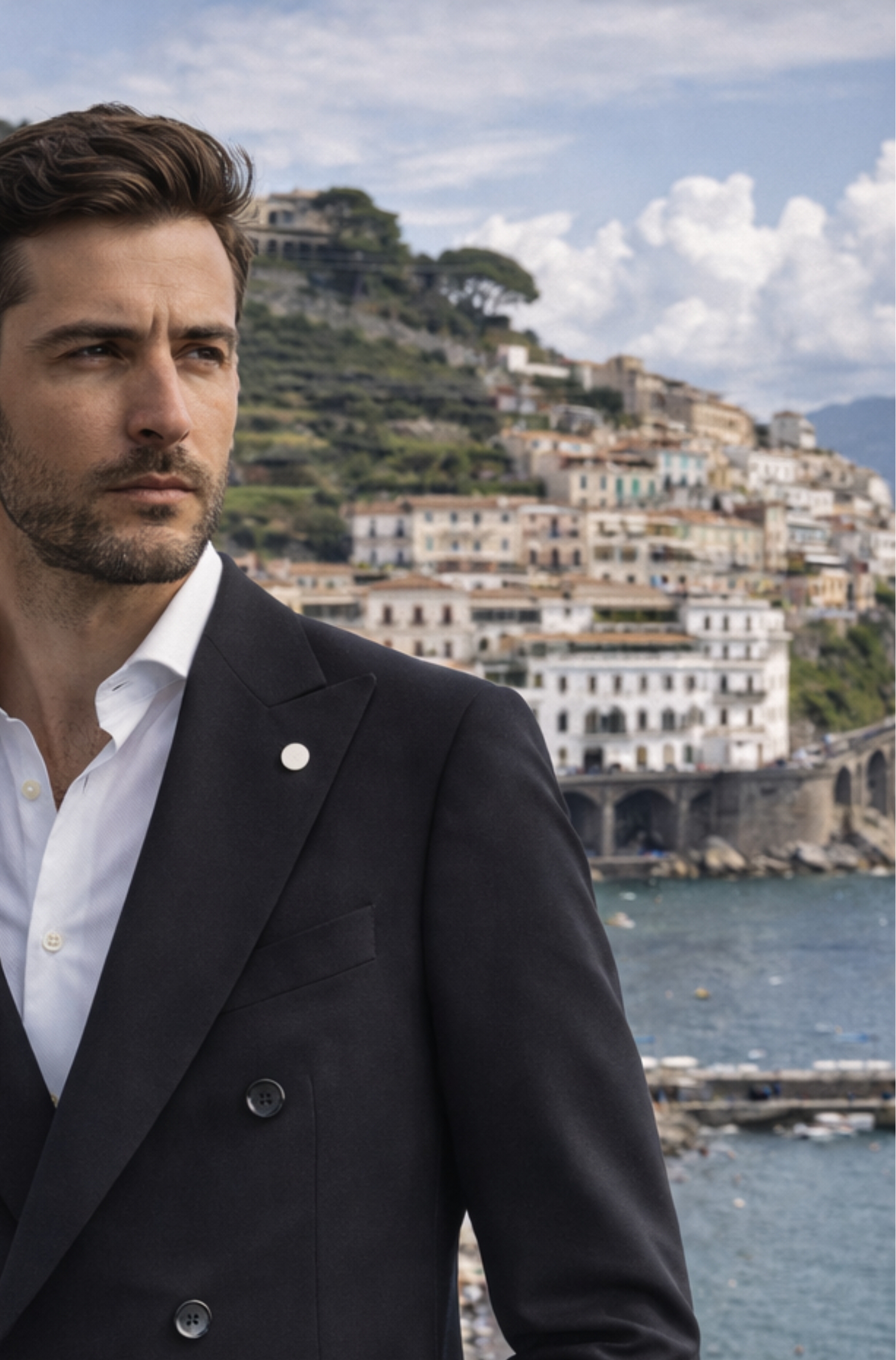 This LBM double-breasted jacket represents a refined balance between classic Italian tailoring and modern performance. Designed for men who value both elegance and practicality, it offers a strong, structured silhouette combined with premium materials.