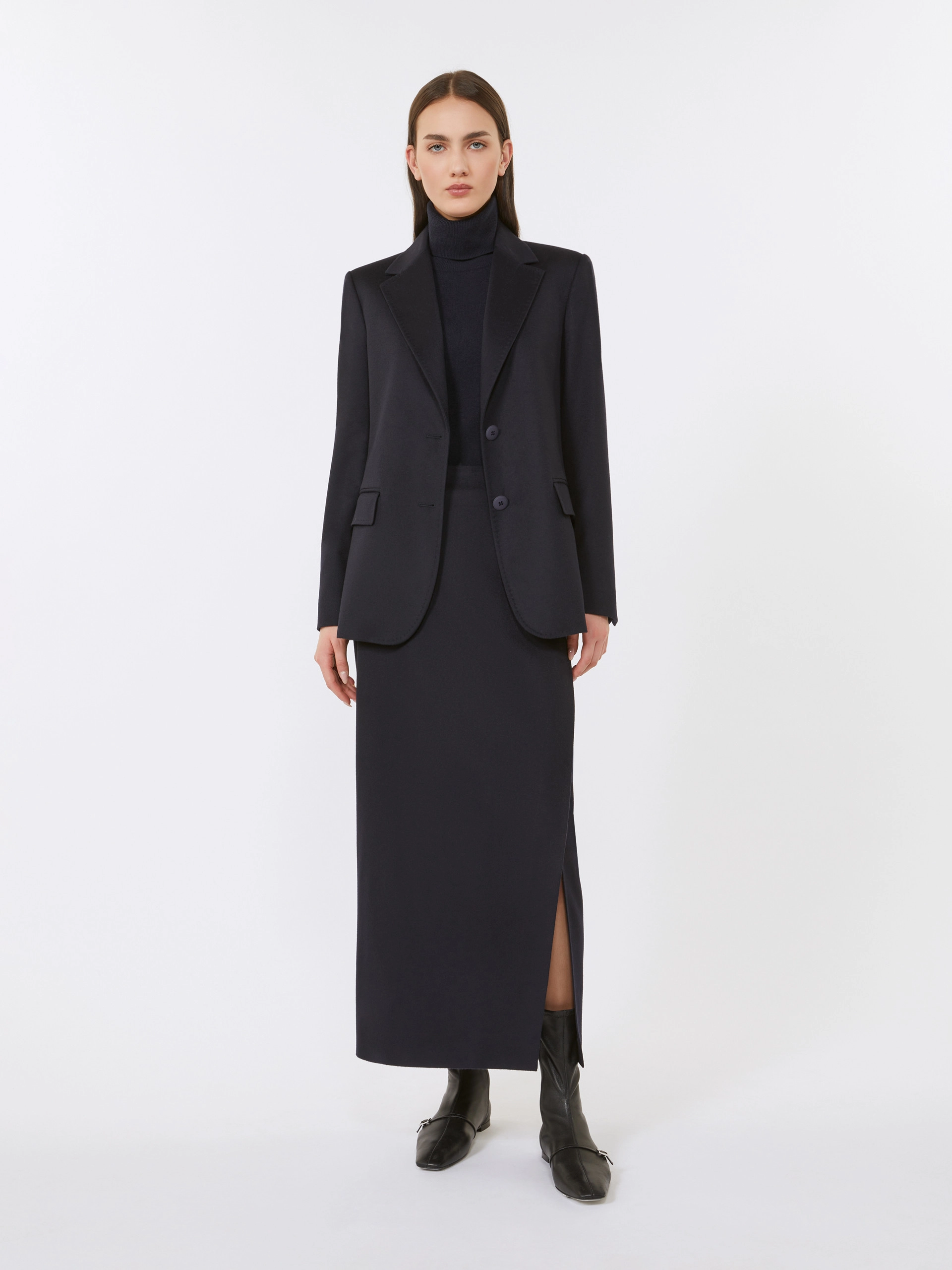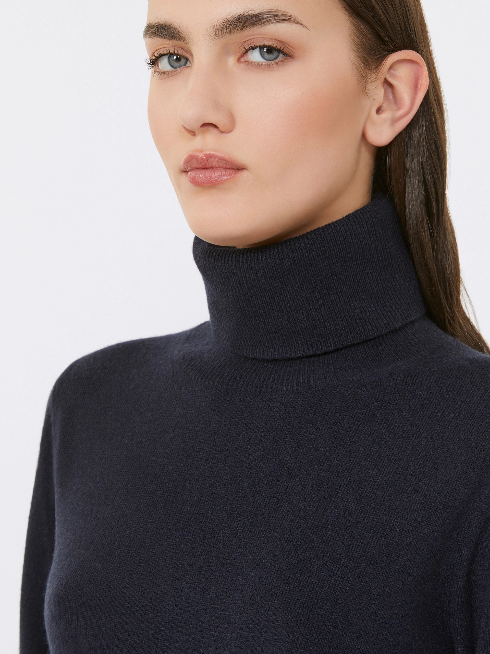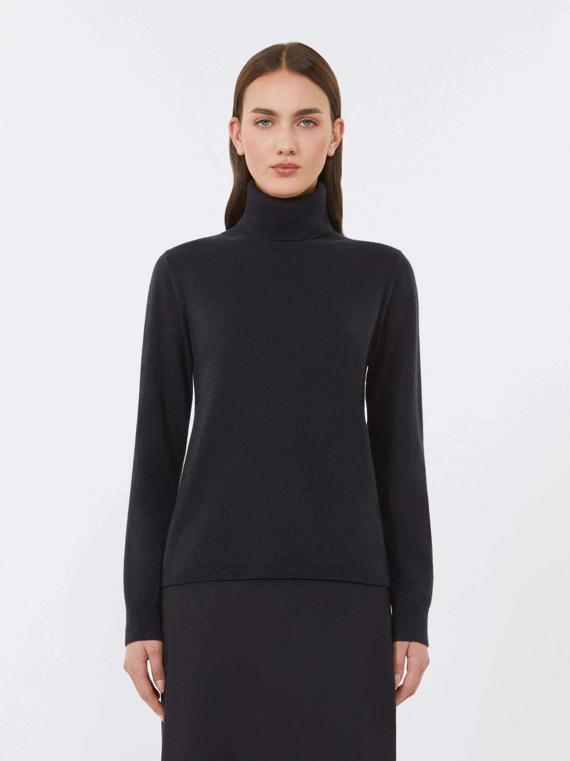 Knitted from a luxurious blend of wool and cashmere, it offers softness, warmth, and a lightweight feel. The ribbed fold-over turtleneck adds a sophisticated touch, while the regular fit and straight hem create a clean, versatile silhouette. Finished with ribbed cuffs and hem, this piece transitions effortlessly from day to evening, perfect for layering or wearing on its own. A wardrobe staple that showcases Max Maras impeccable craftsmanship and timeless Italian style.