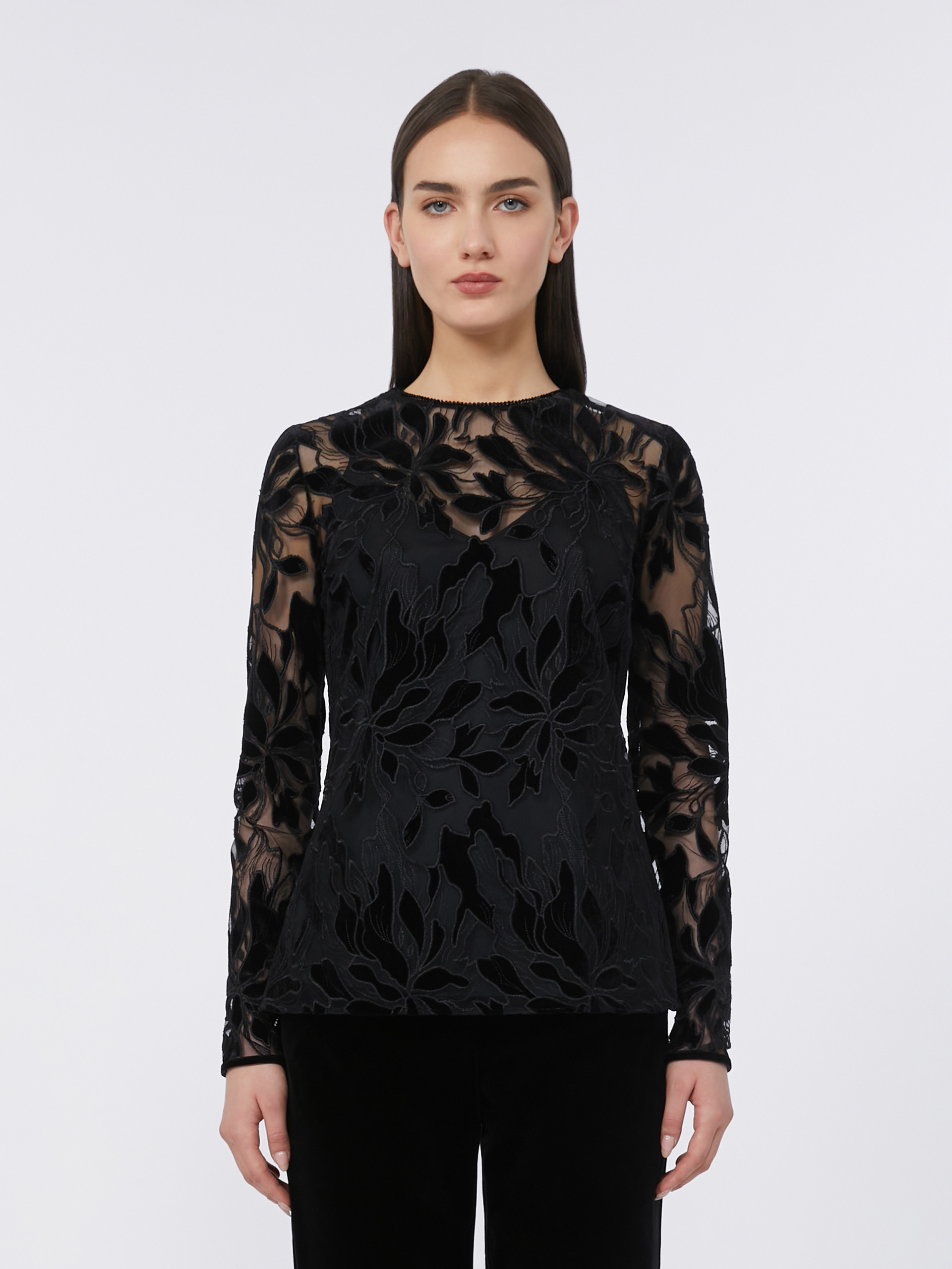 of tulle with the texture of all over velvet embroidery, for an effect that is