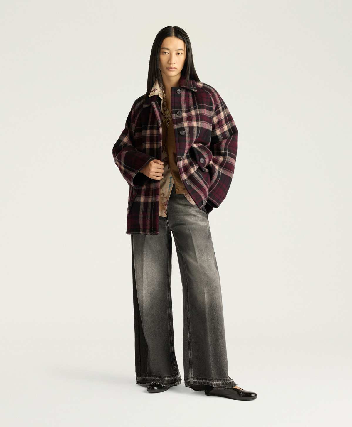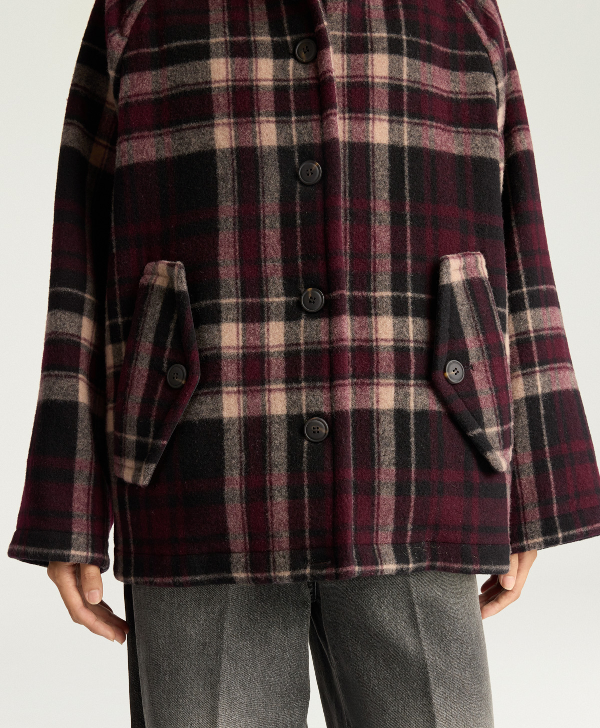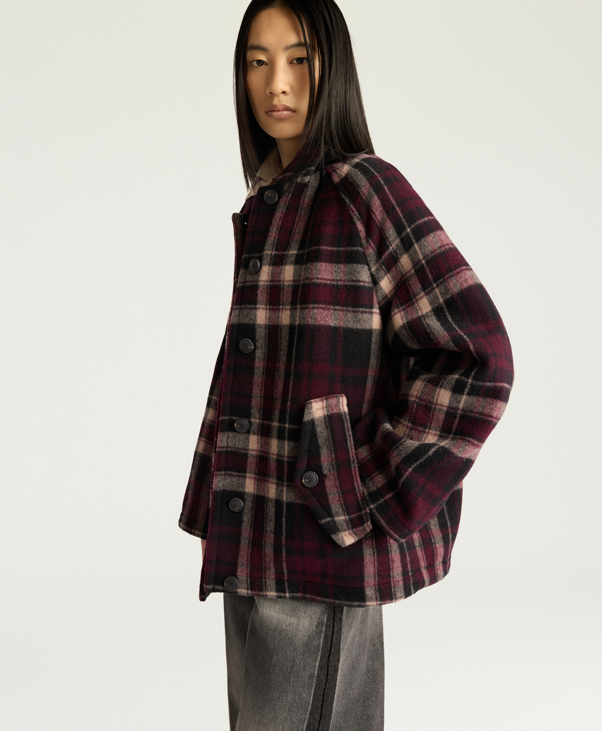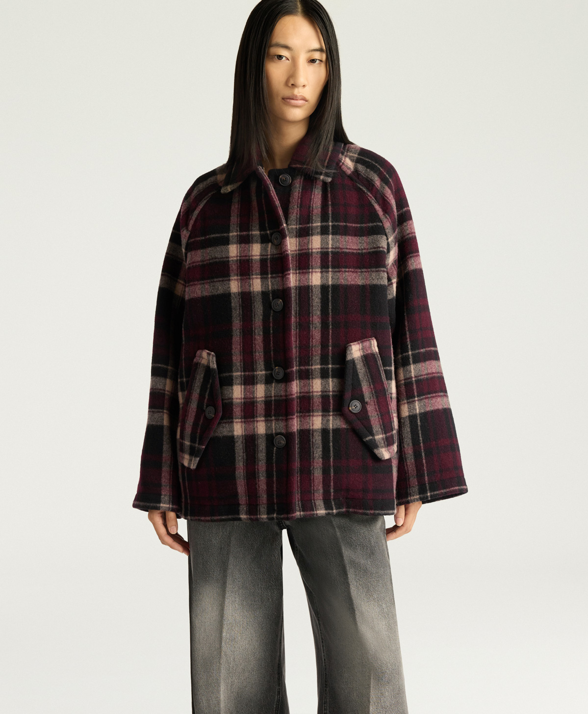 The Momoni Brighton double-face wool coat in multicolor burgundy is designed for those who aspire to stand out with elegance. Made from double-face wool cloth in a multicolor tartan pattern, its unlined to emphasize its lightweight versatility.
