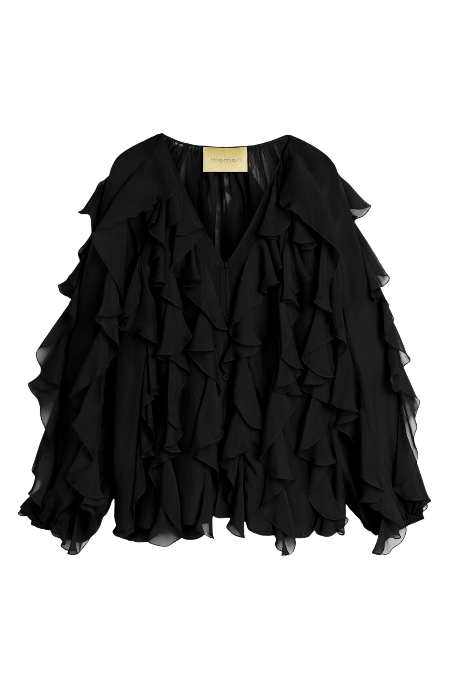 Momonì Canela Shirt in Viscose Silk Chiffon - Ruffles and Raglan Sleeve