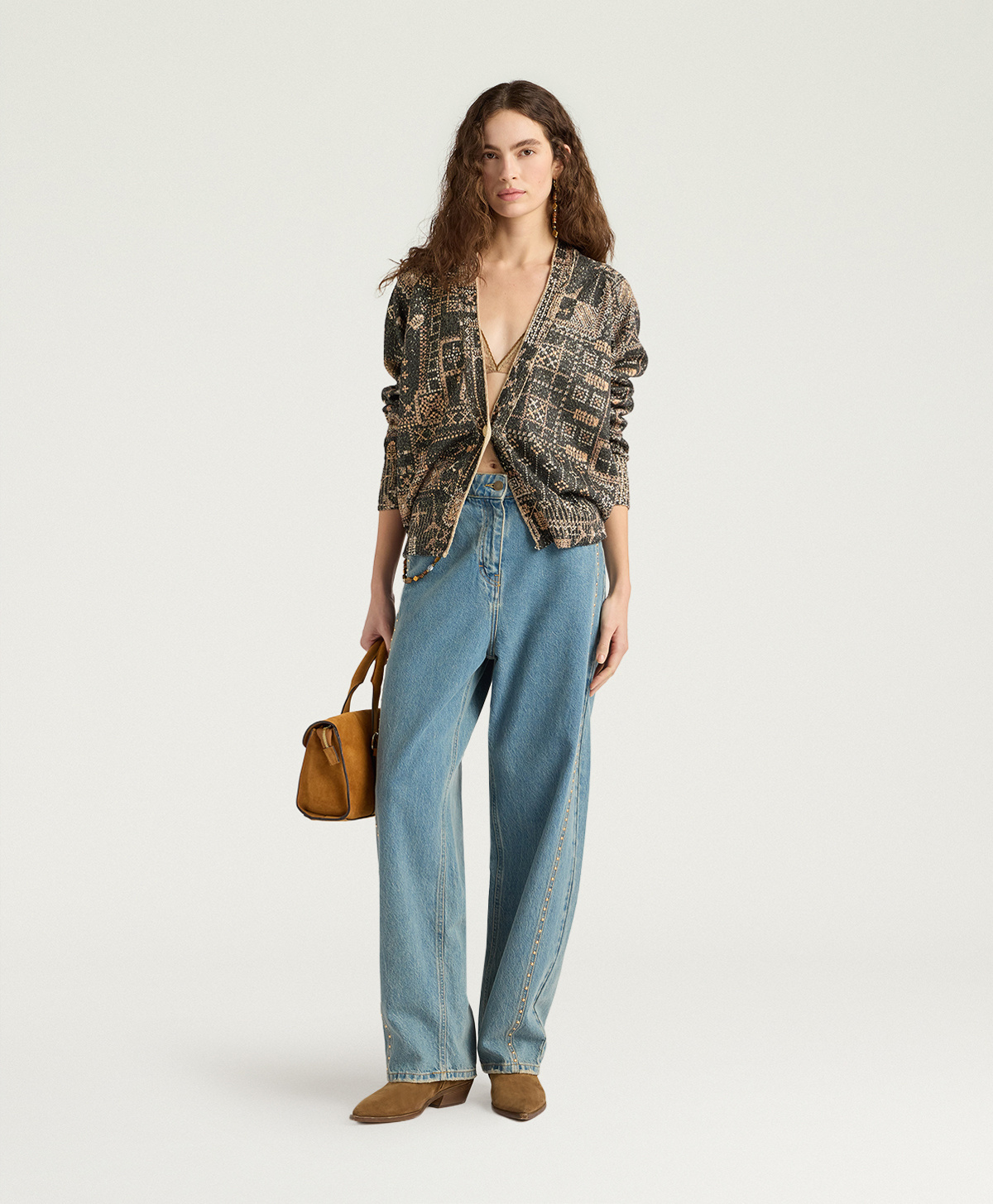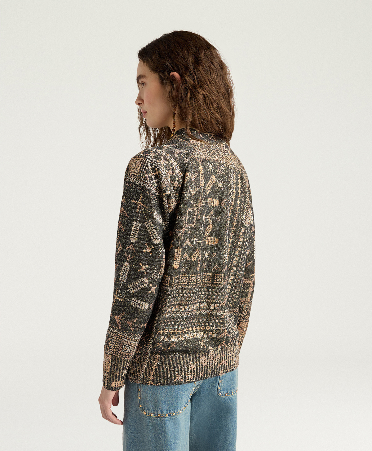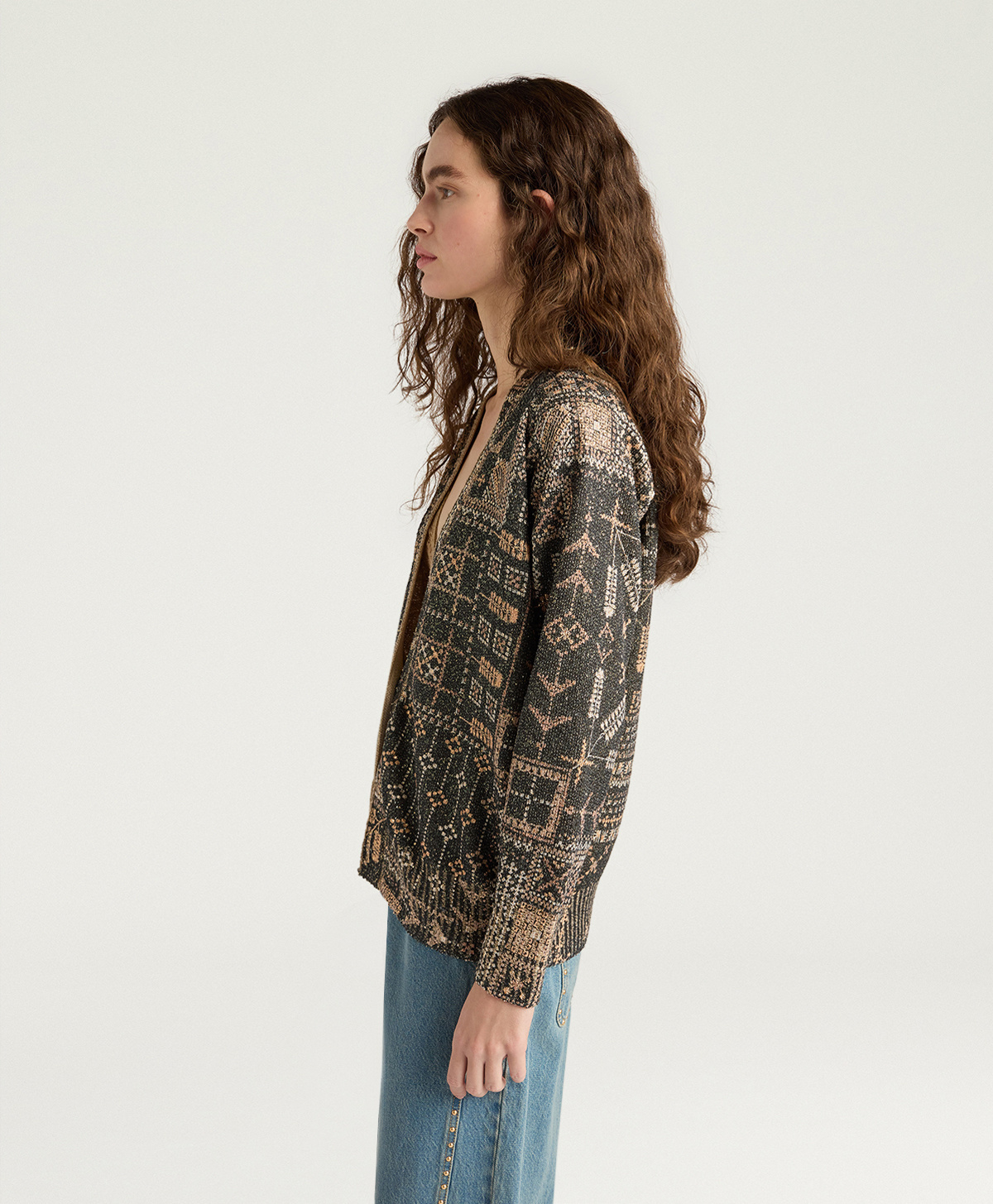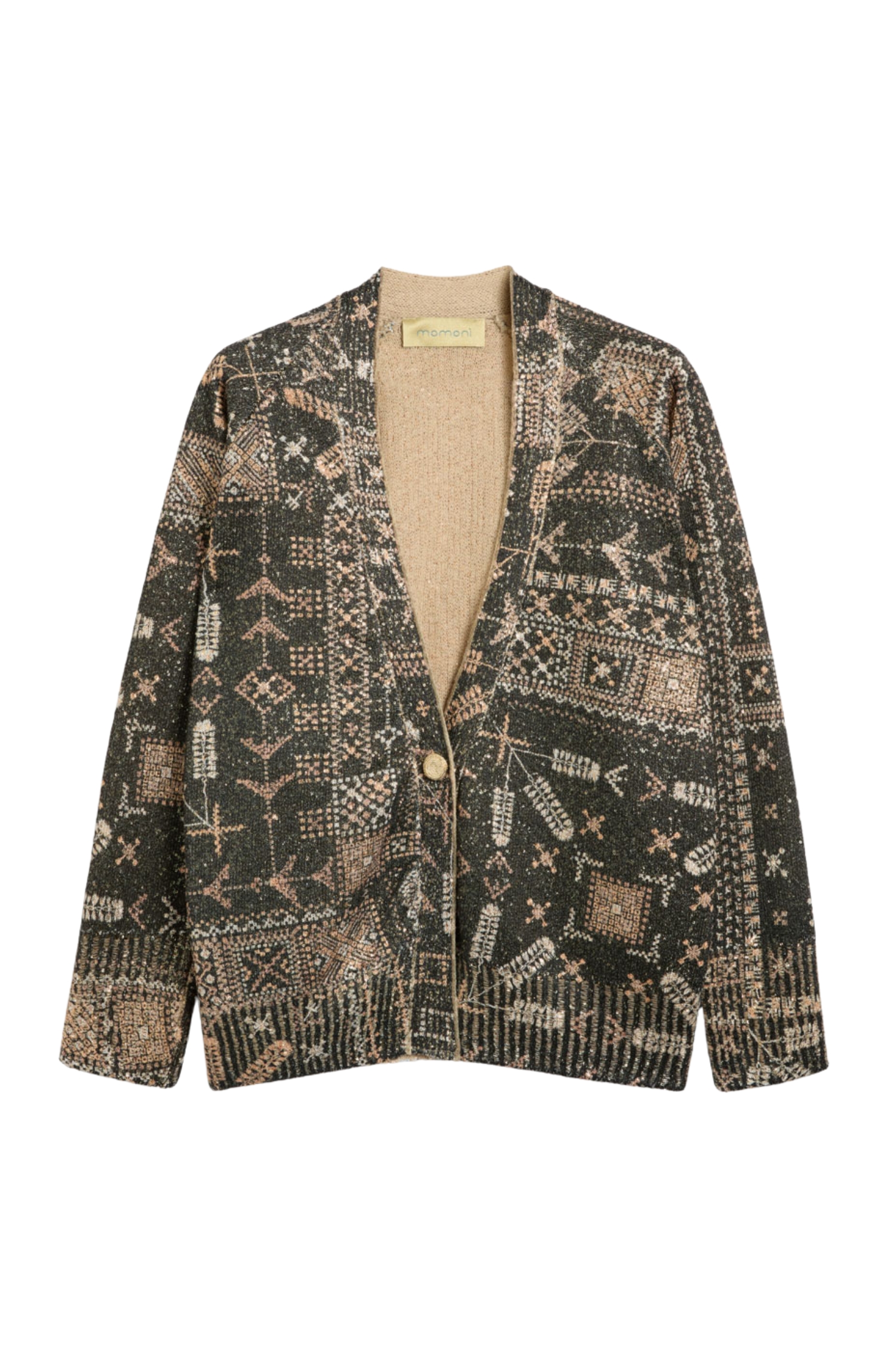 Momonì Eduardo Cardigan in Printed Knit with Sequins - Jewel Buttons