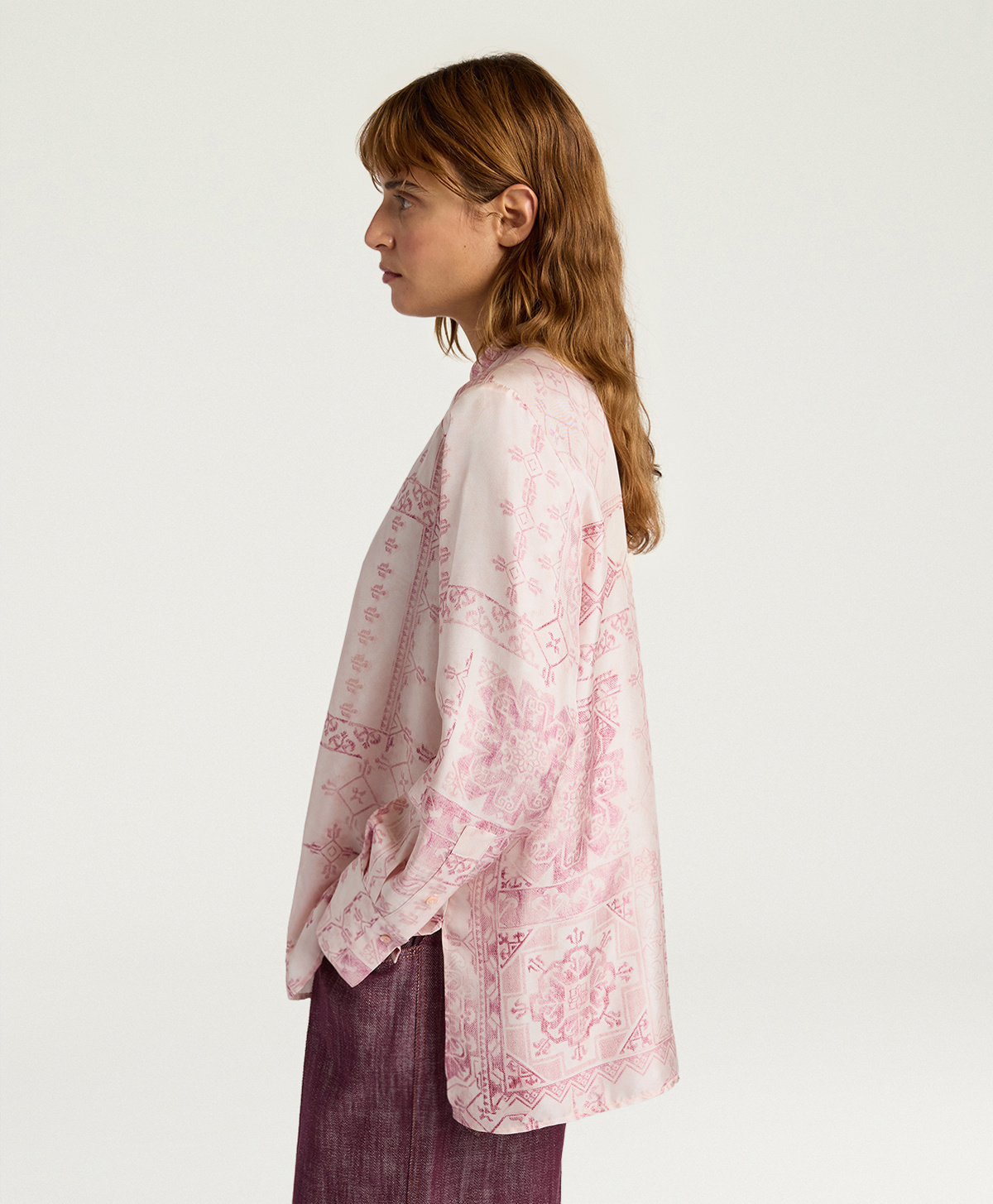 Momonì Mesilla Shirt in Printed Silk Twill - Grandad Collar Relaxed Fit