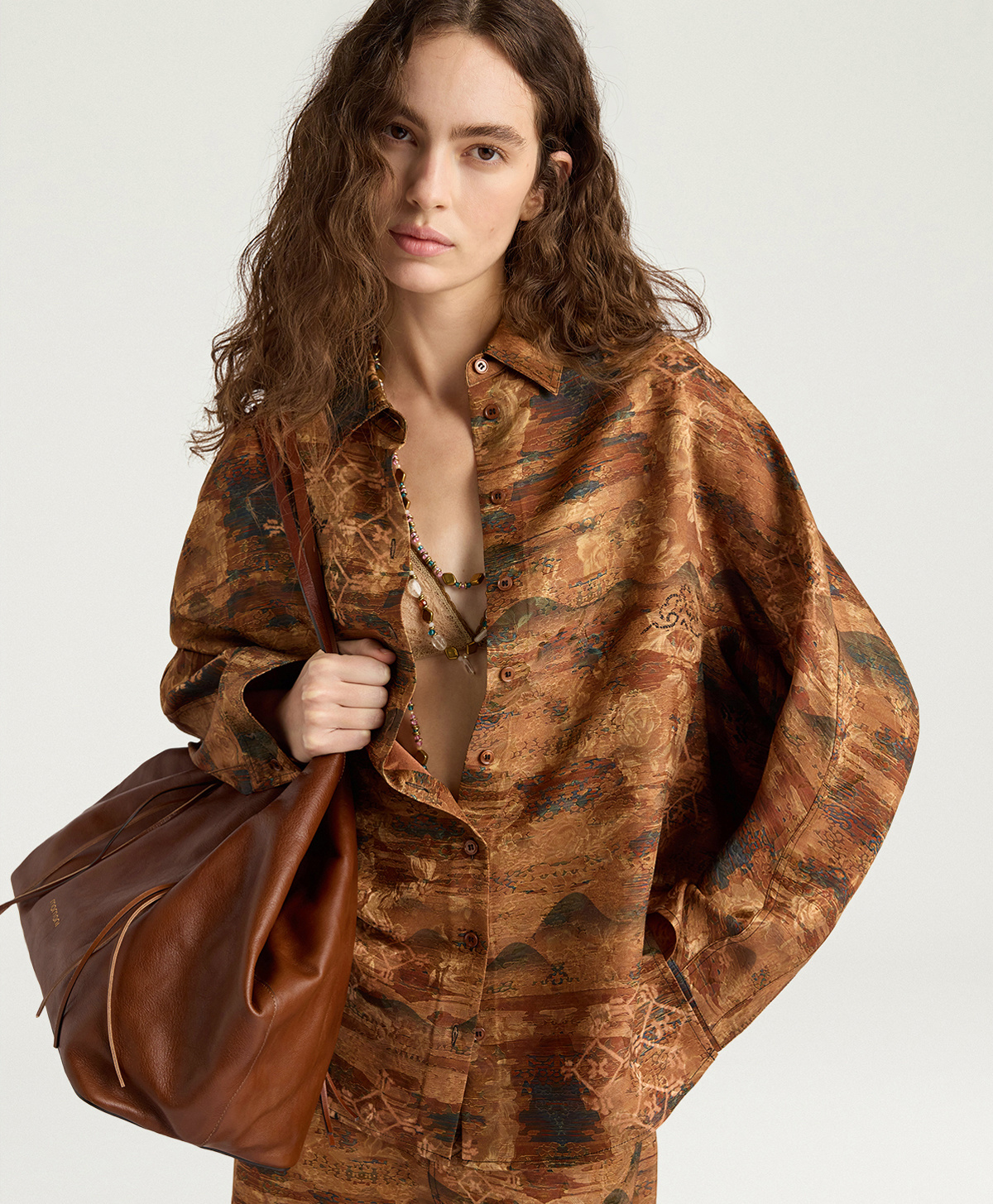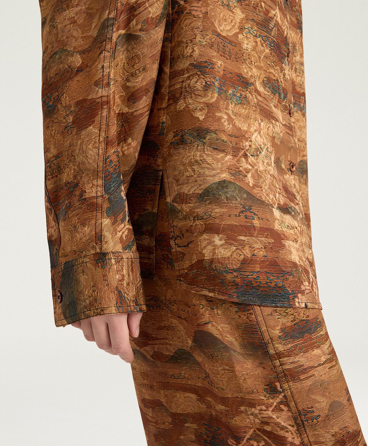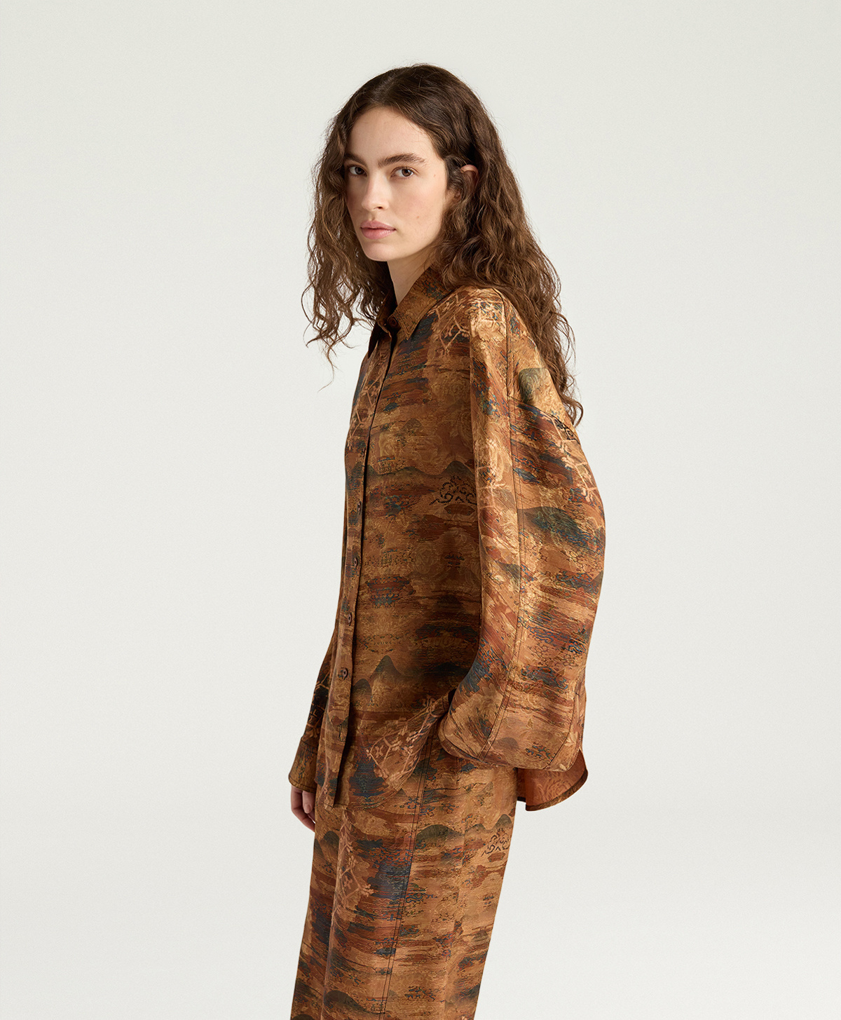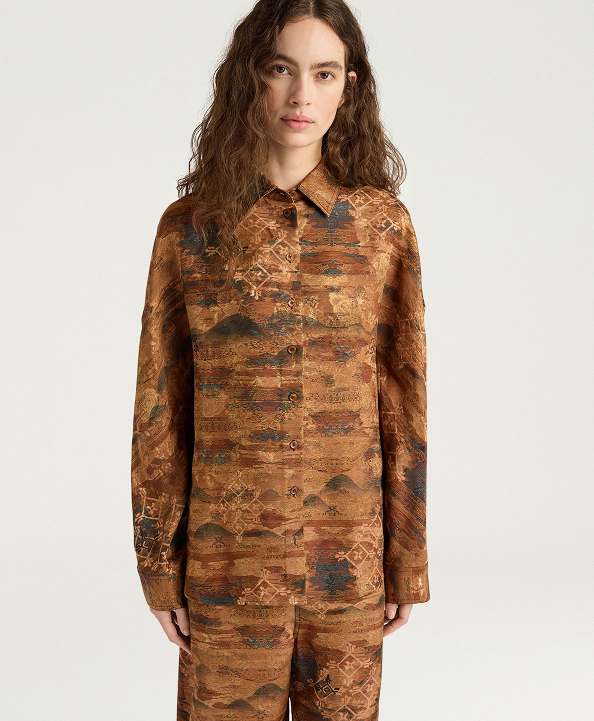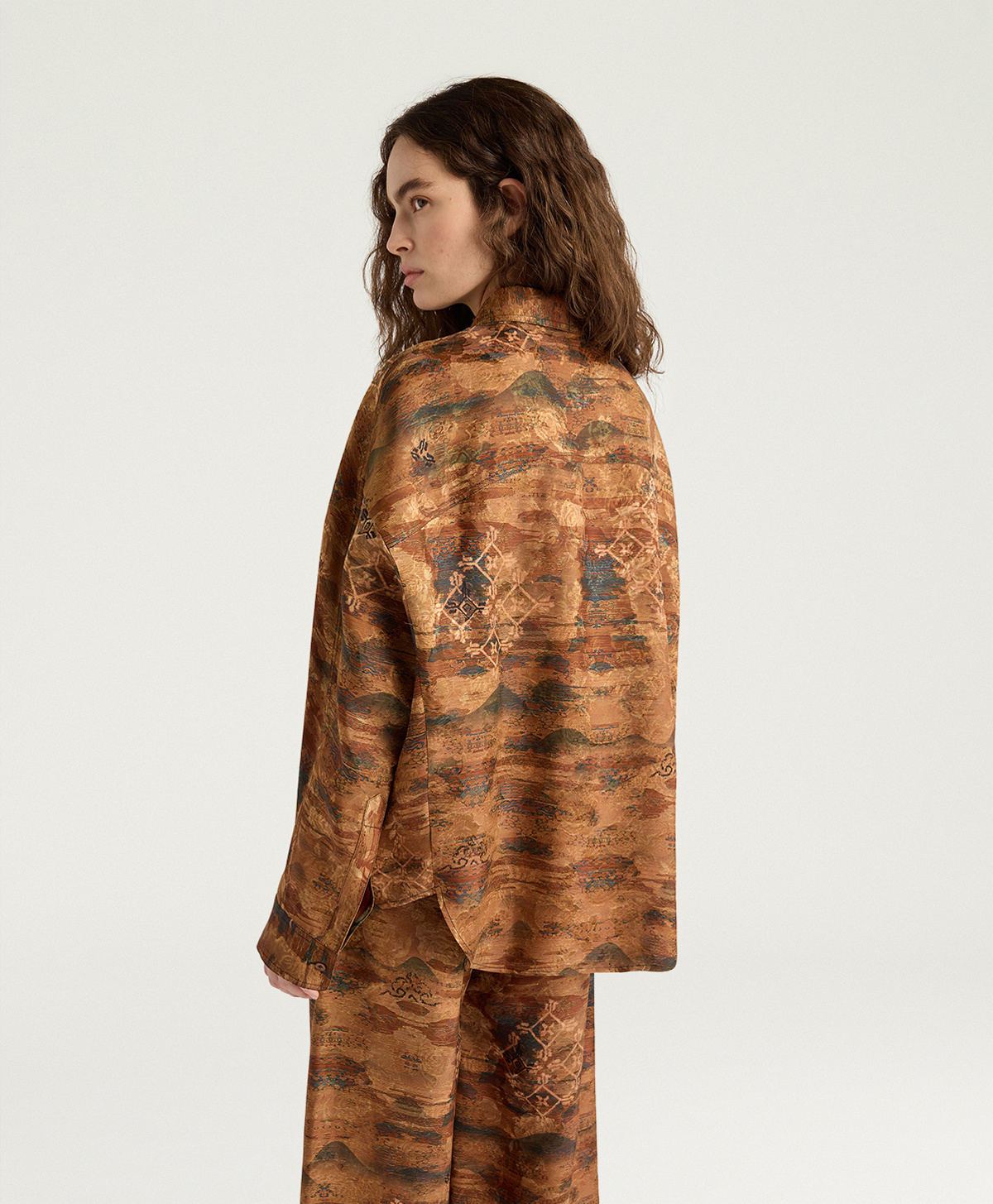 Oversized shirt in printed viscose and silk jacquard
