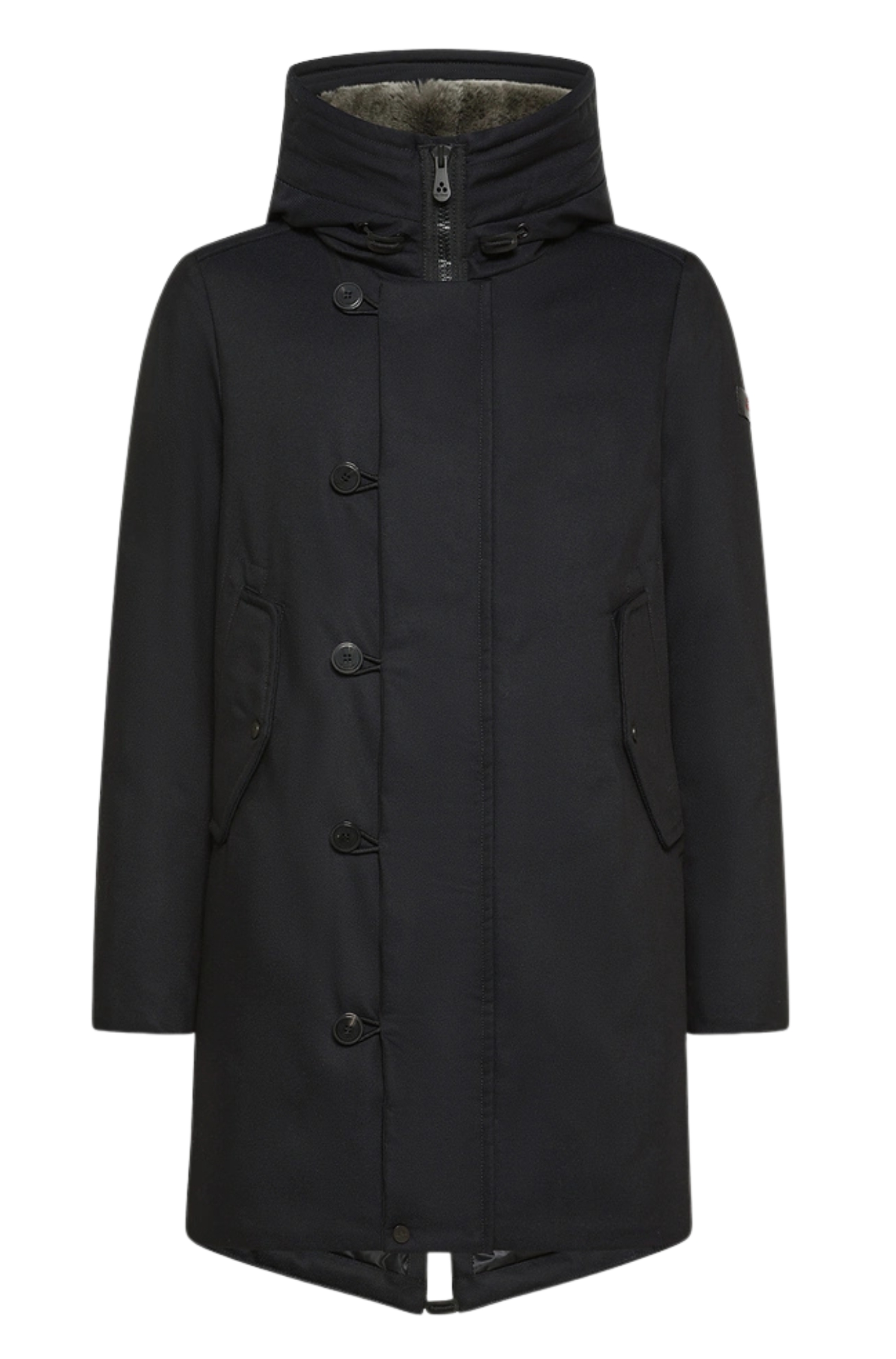 Details include a hidden dual-slider zip with exposed button placket, flap pockets with snap buttons, and an internal drawstring to adjust the fit. The back fishtail vent enhances mobility and style, while the fixed hood with drawcords and detachable fur collar add versatility and elegance.