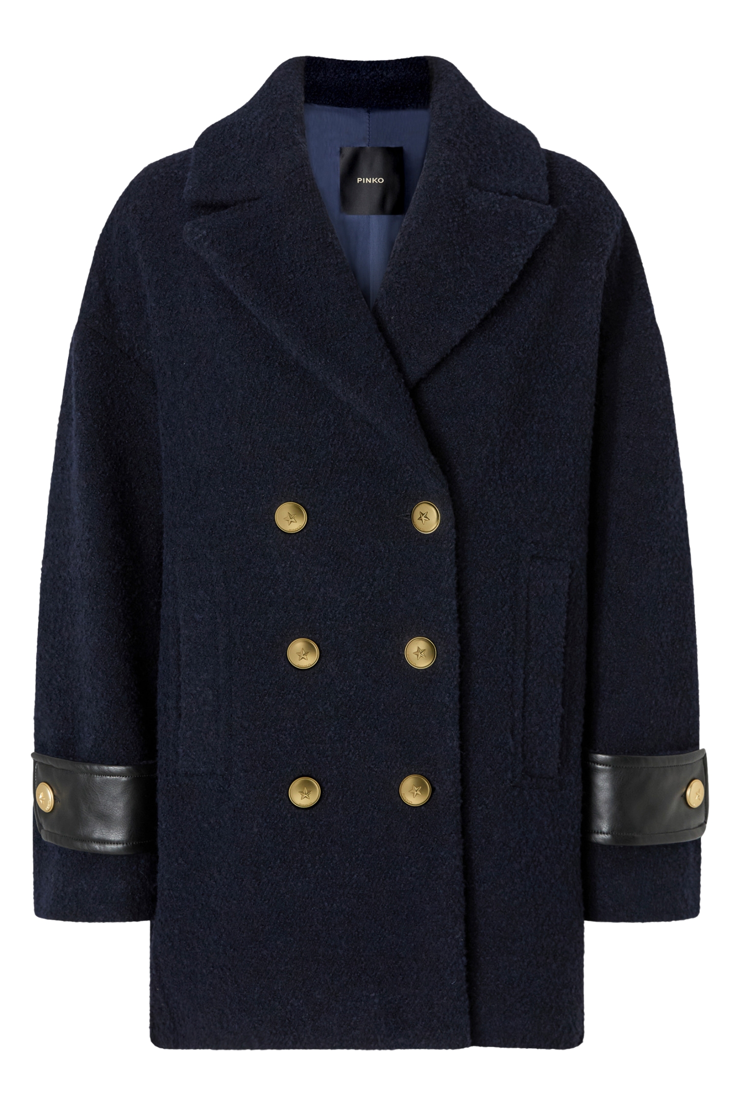 PINKO - Short double-breasted bouclé caban coat