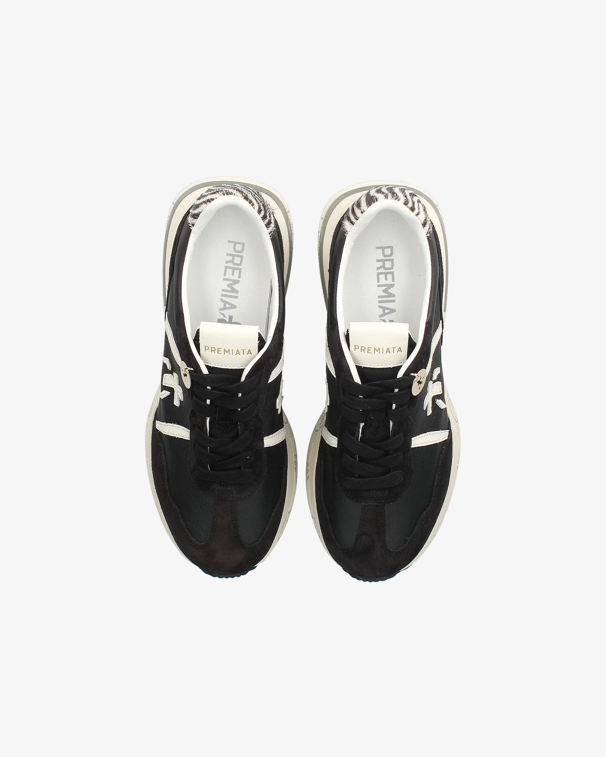 Premiata Cassie 7681 Sneakers Black & White with Zebra Heel Detail and Side Logo