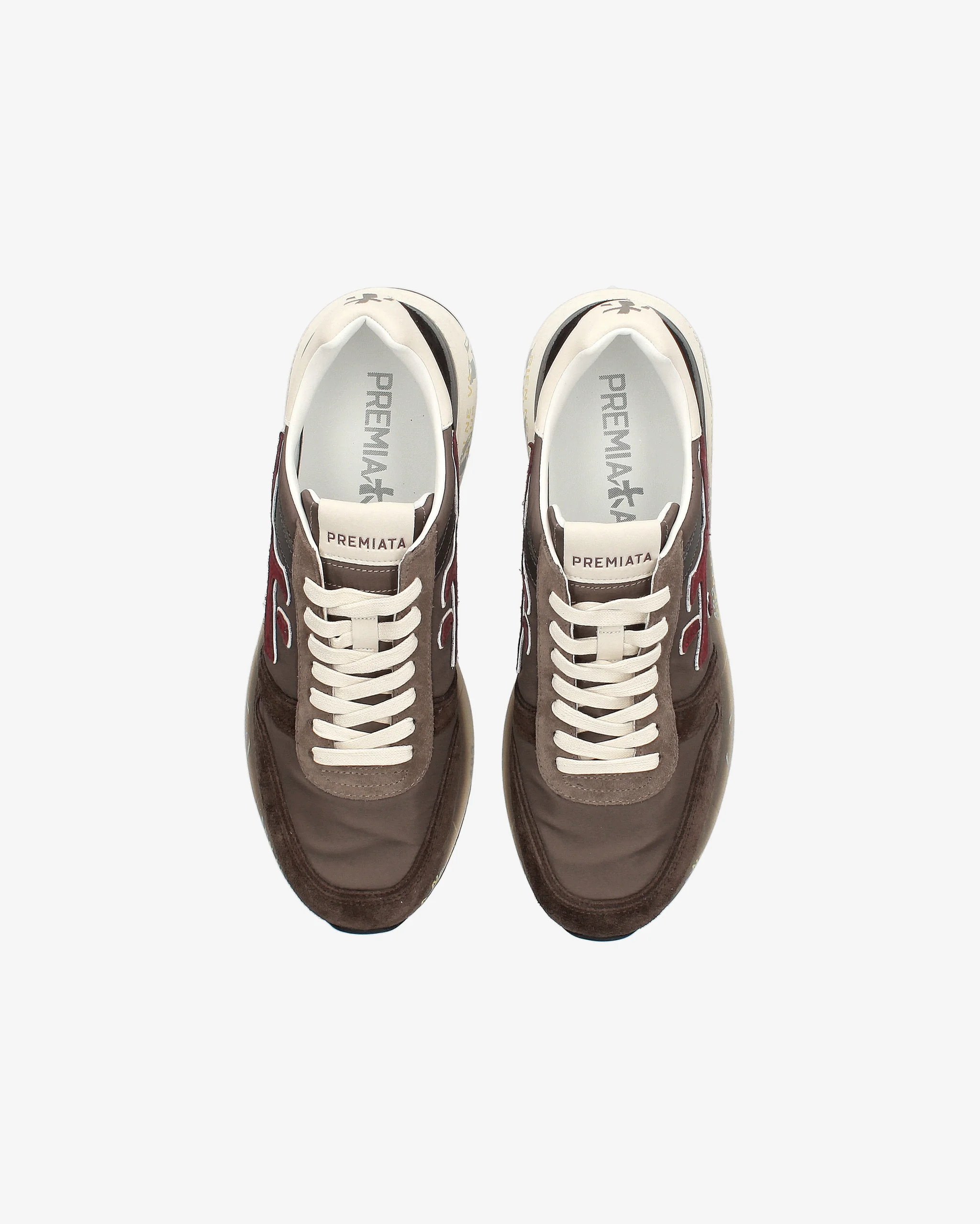 Premiata Mick 7714 Sneakers Brown Leather and Nylon with Iconic Logo