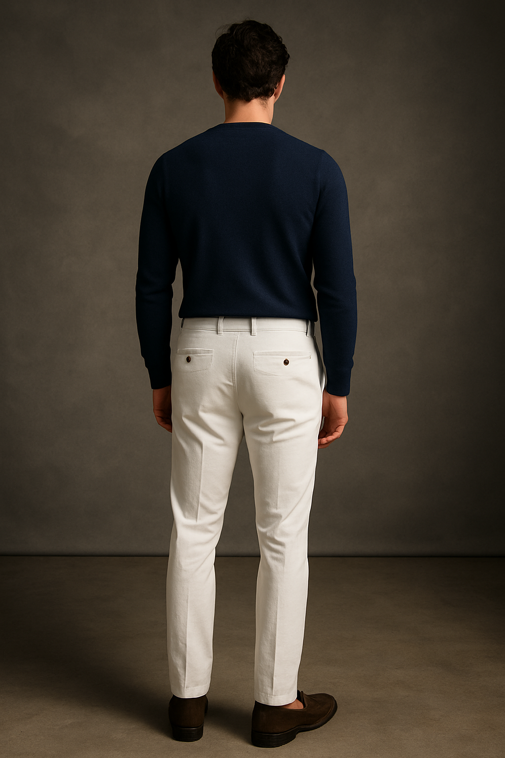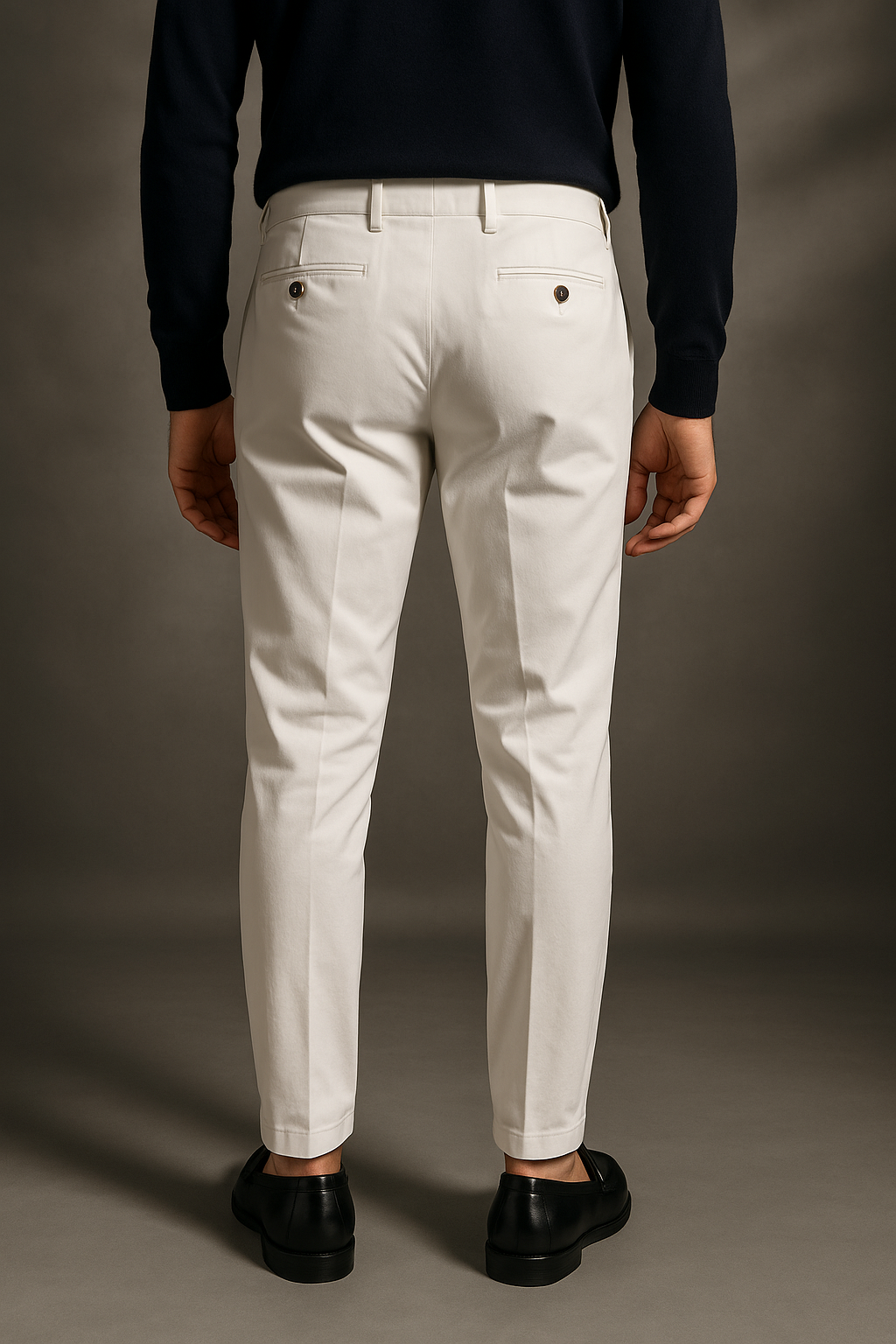 Perfect for summer days and bright, minimalist outfits, they are designed for those who appreciate a lightweight, breathable, and flawlessly tailored piece. The pure white tone enhances the sophistication of PT Torinos cut and pairs effortlessly with neutral shades, colorful shirts, or structured blazers.